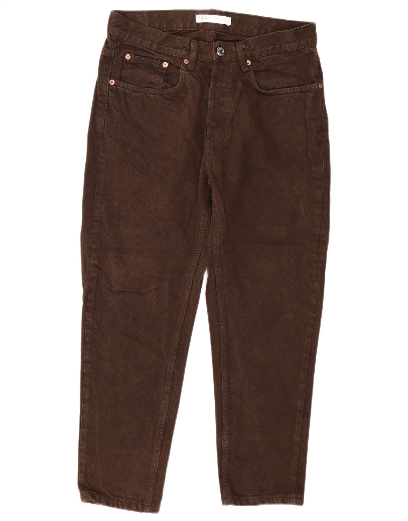 ZARA Herren-Jeans, kurz geschnitten, EU 40, mittelgroß, W31, L25, braun, Baumwolle