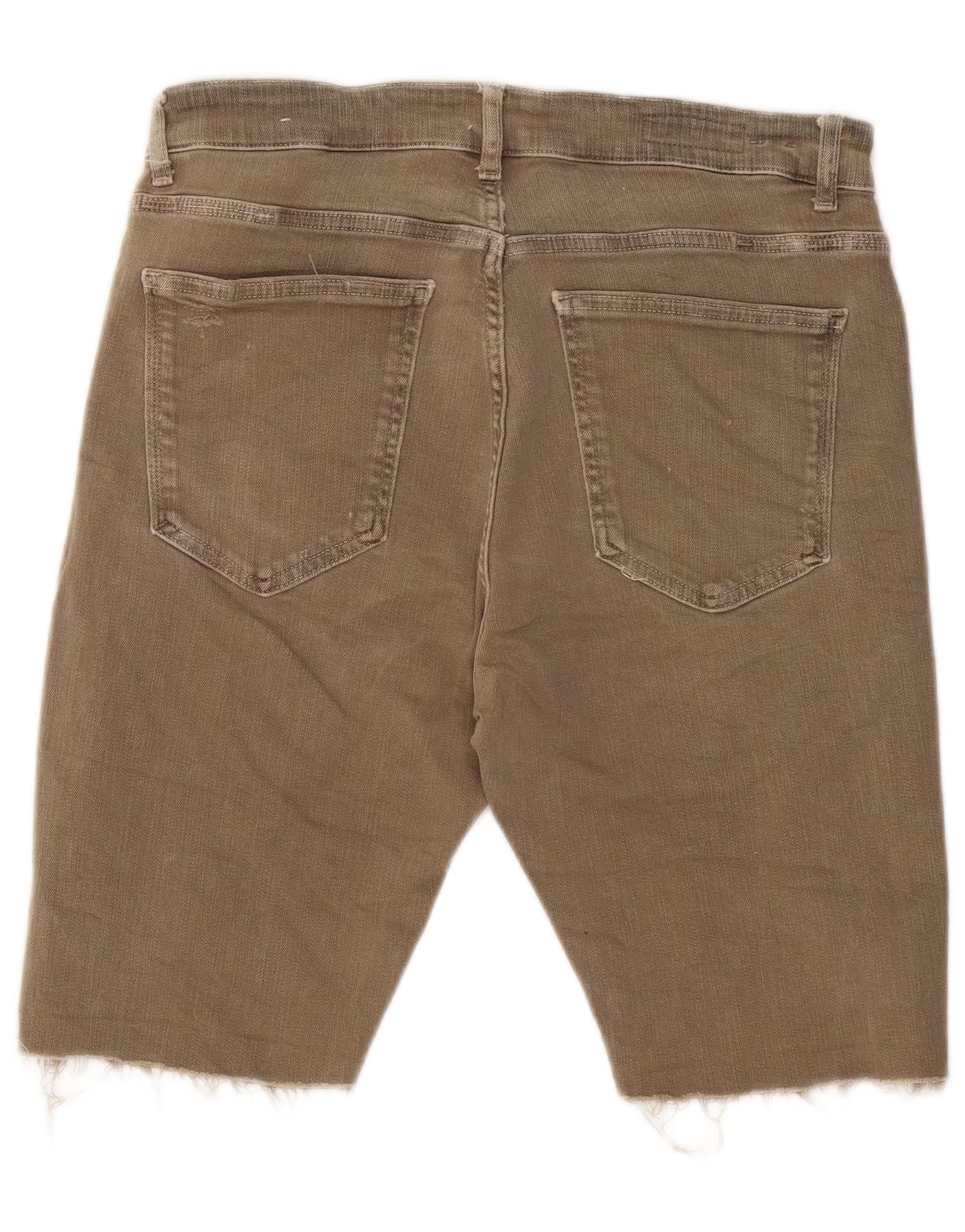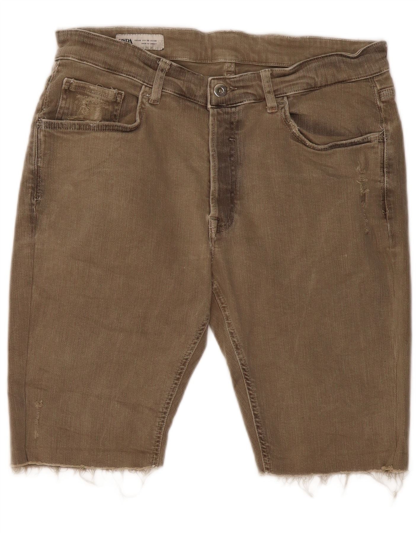ZARA Herren Distressed Denim Shorts EU 46 XL W36 Khaki