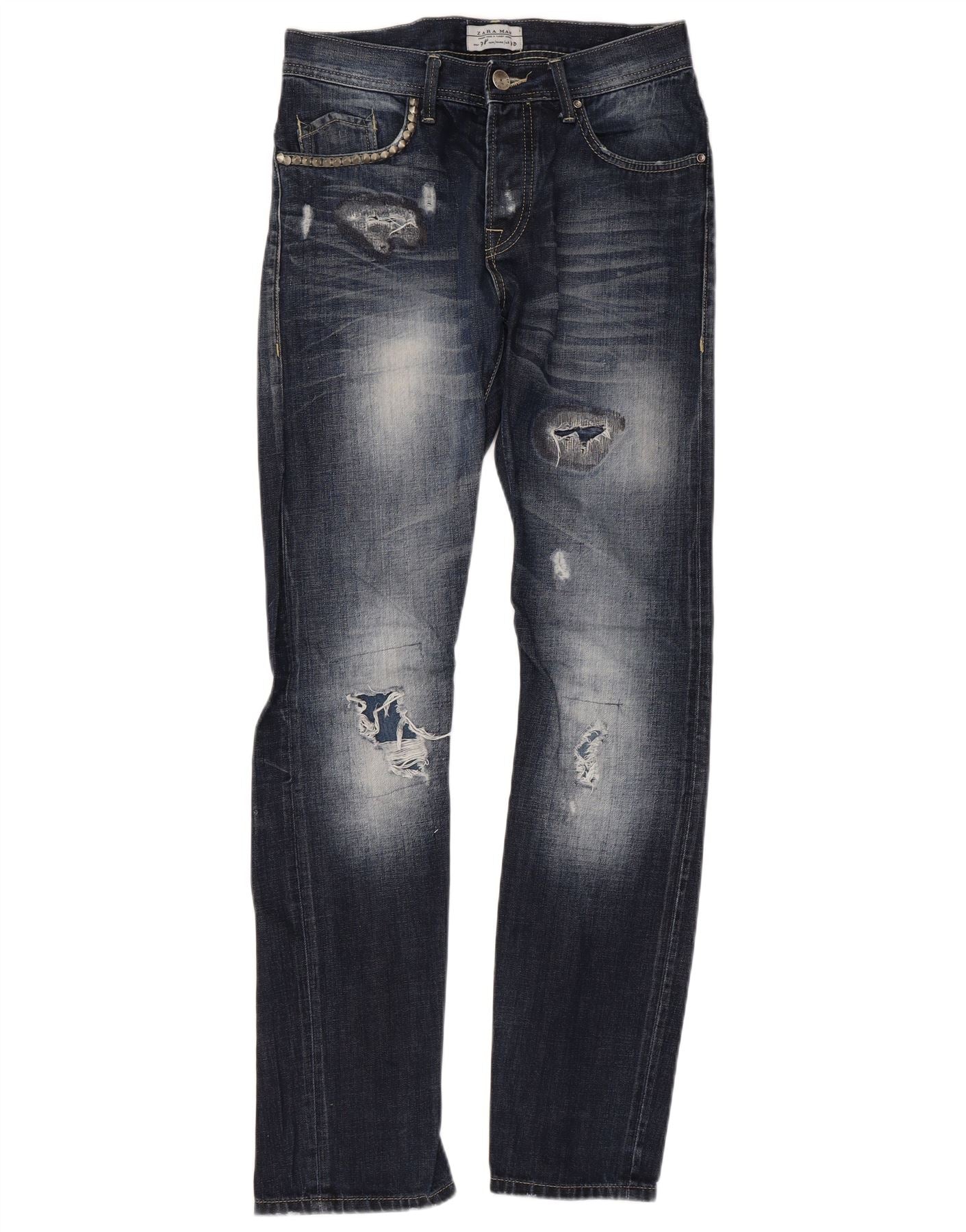 ZARA Herren Distressed Slim Jeans EU 38 Small W30 L33 Marineblau