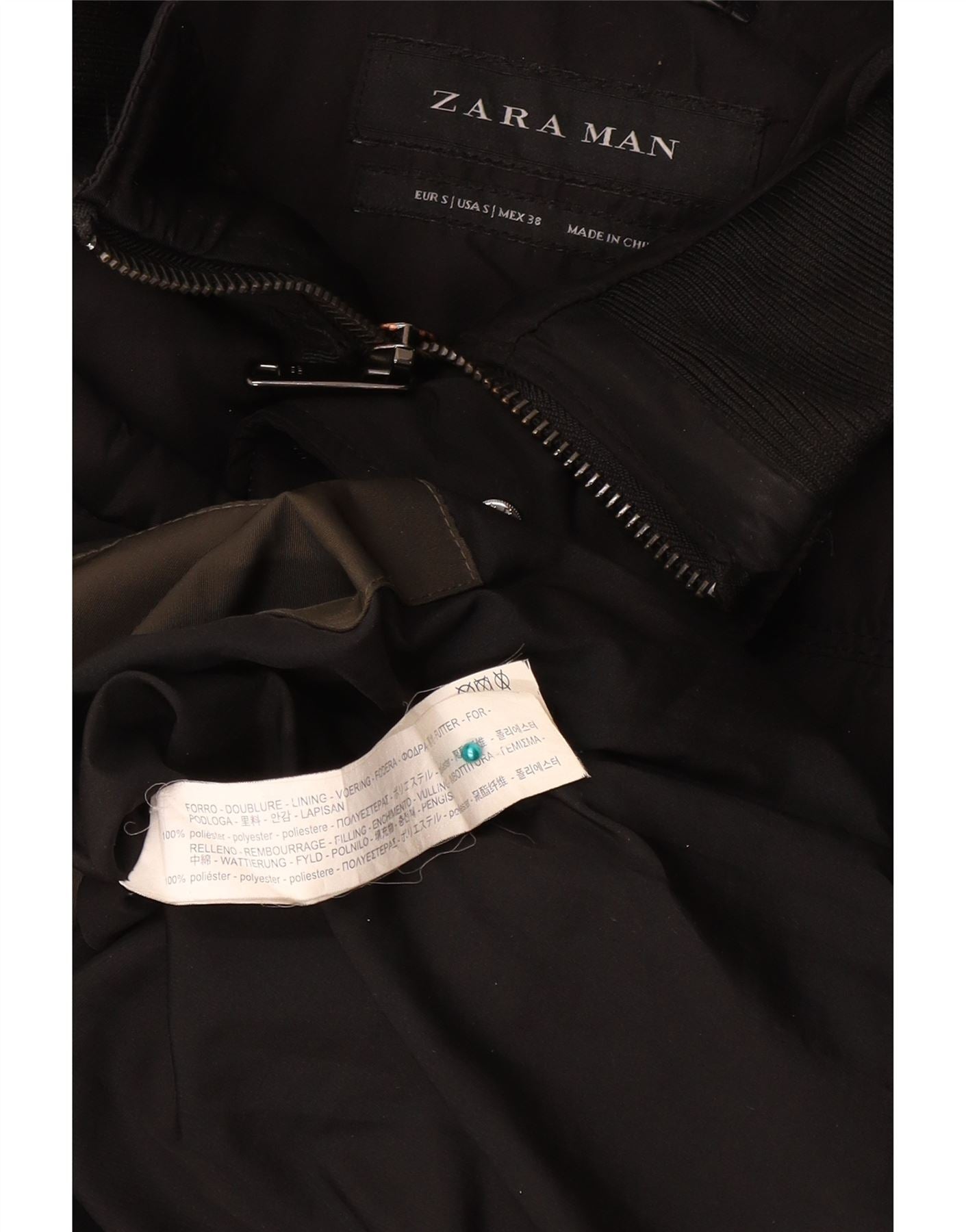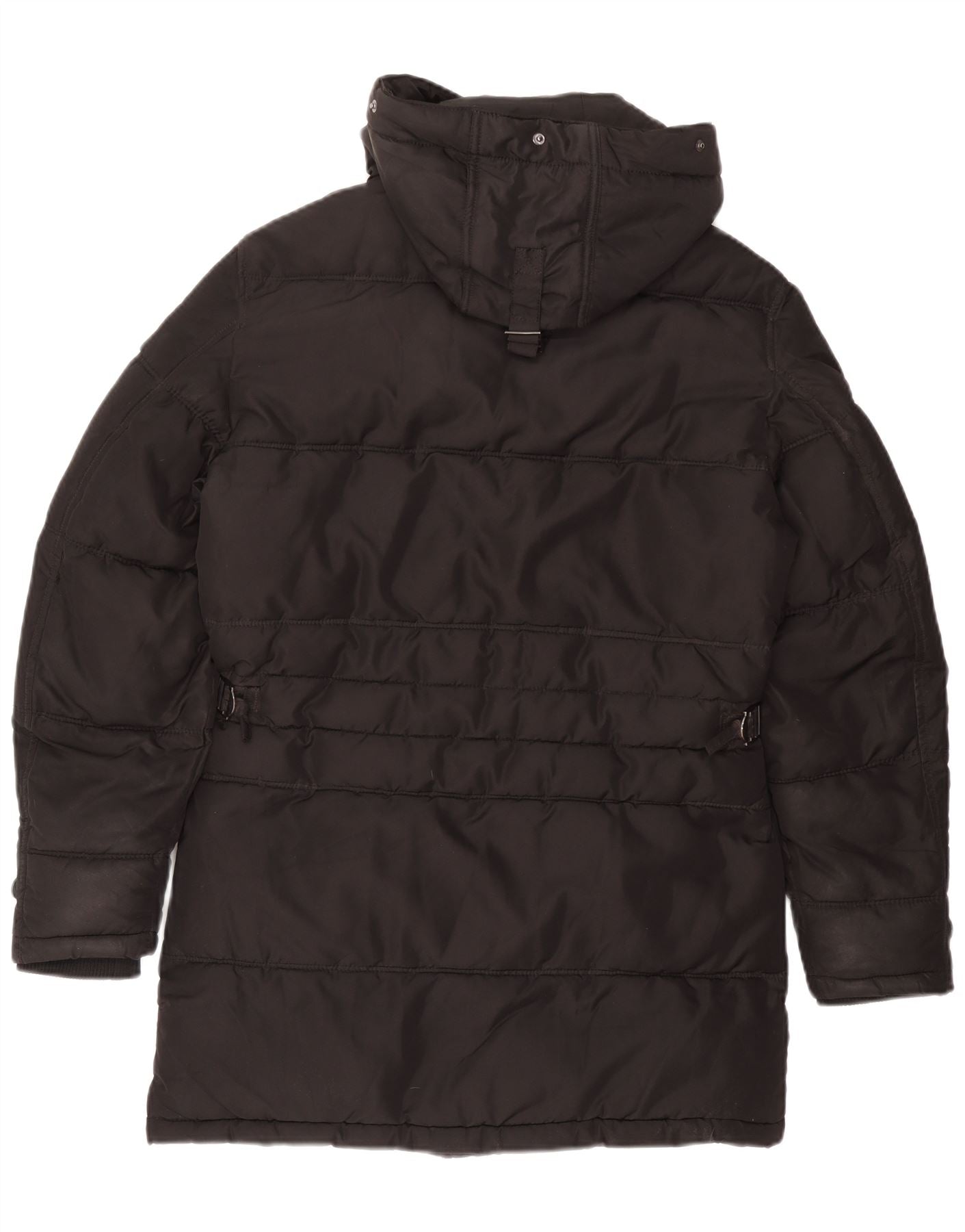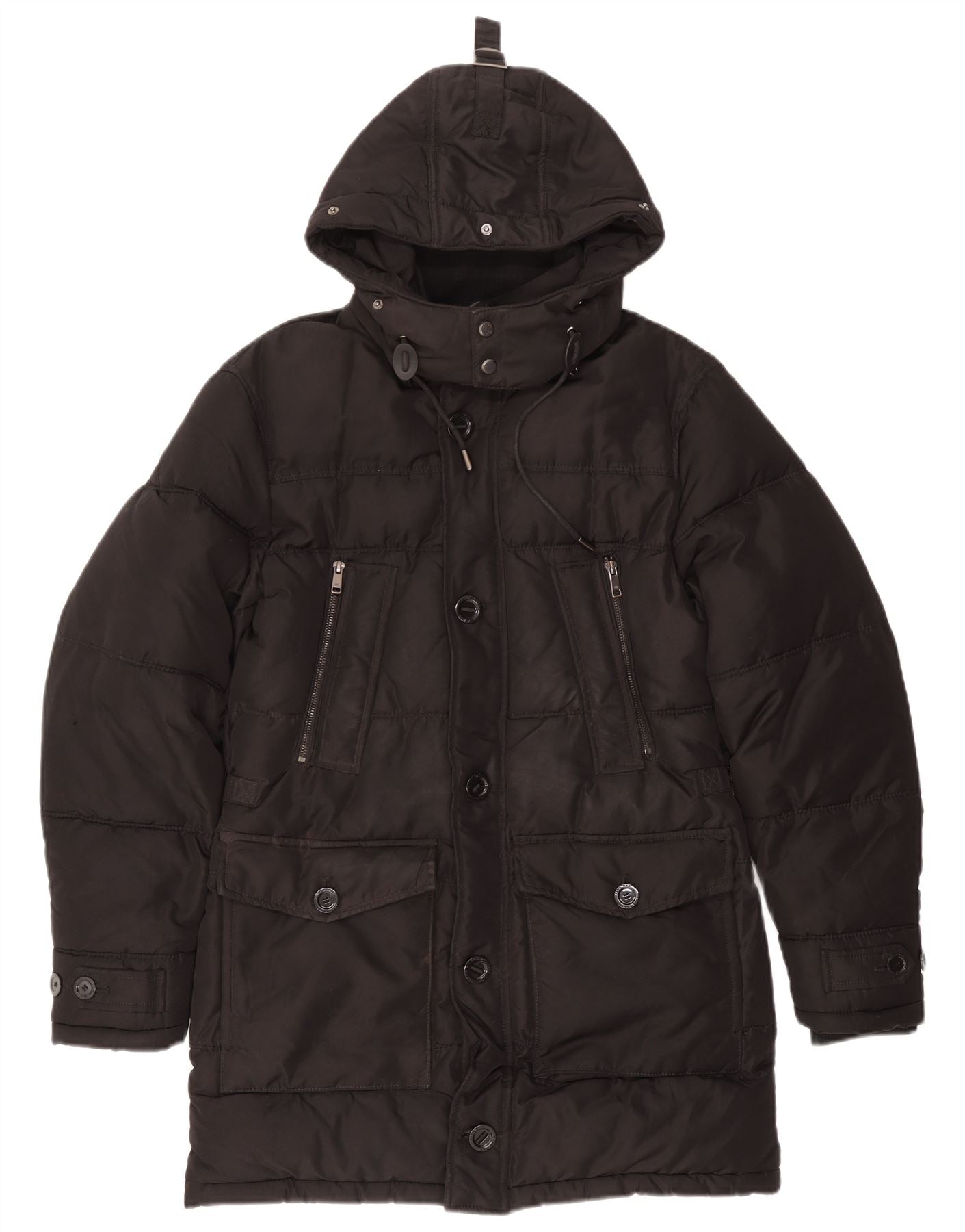 Zara Herren-Mantel mit Kapuze, gepolstert, Größe 36, Größe S, Schwarz, Polyester