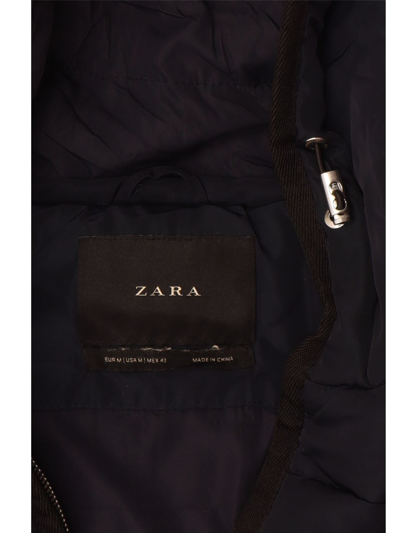 ZARA Herren-Jacke mit Kapuze, gepolstert, Größe 38, Mittel, Marineblau, Farbblock