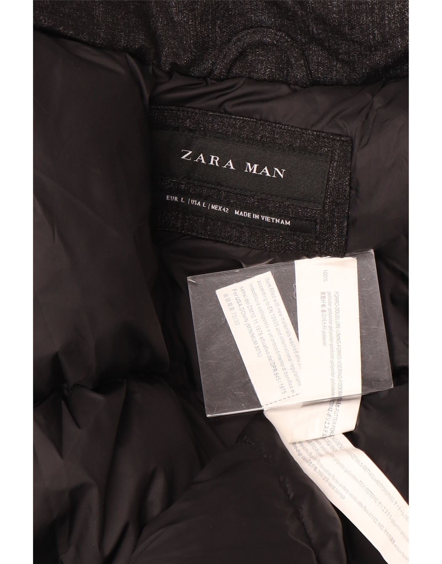 ZARA Herren Wattierter Mantel UK 40 Large Schwarz Polyester