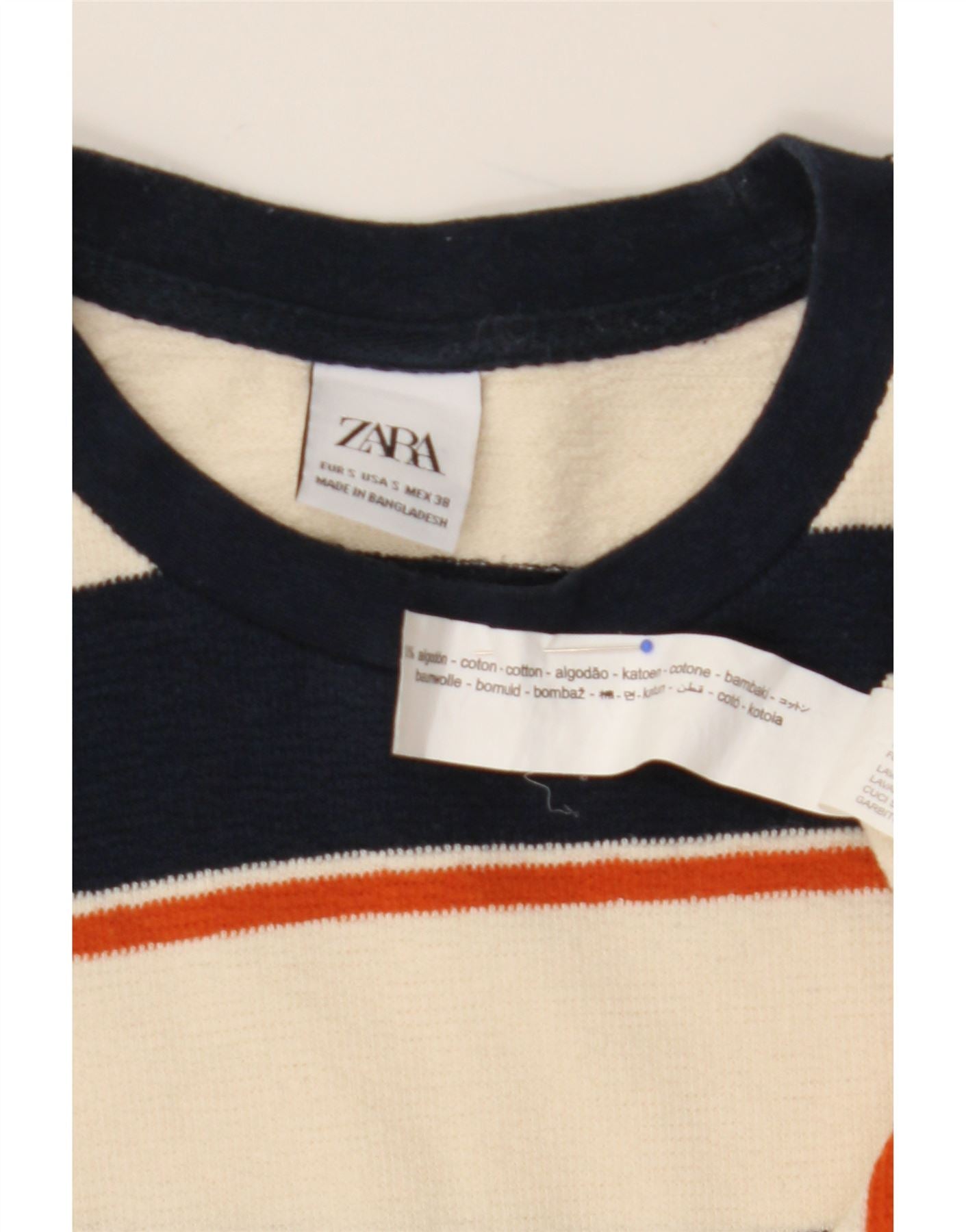 ZARA Herren T-Shirt Top Small Beige gestreift aus Baumwolle