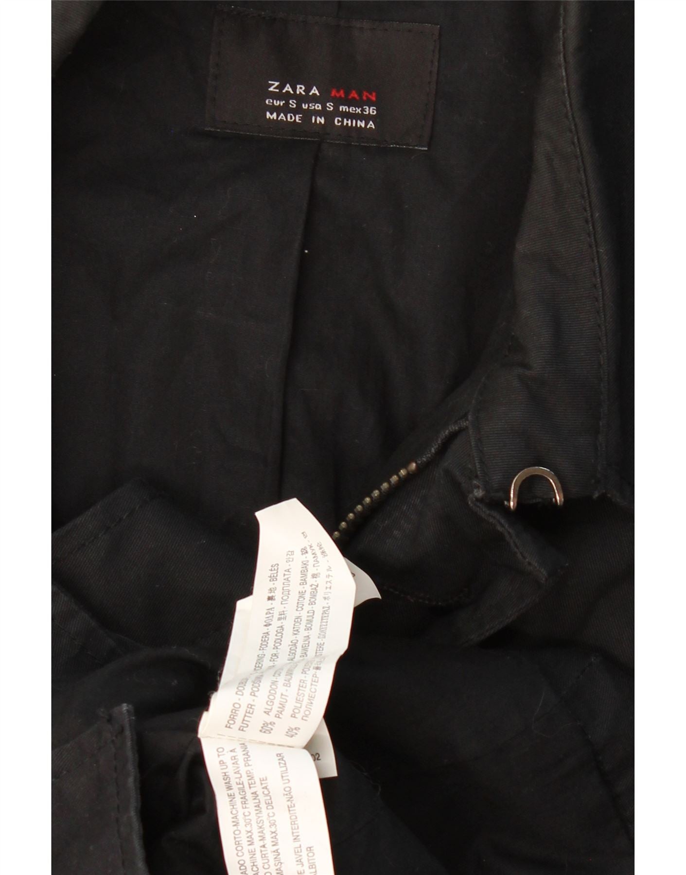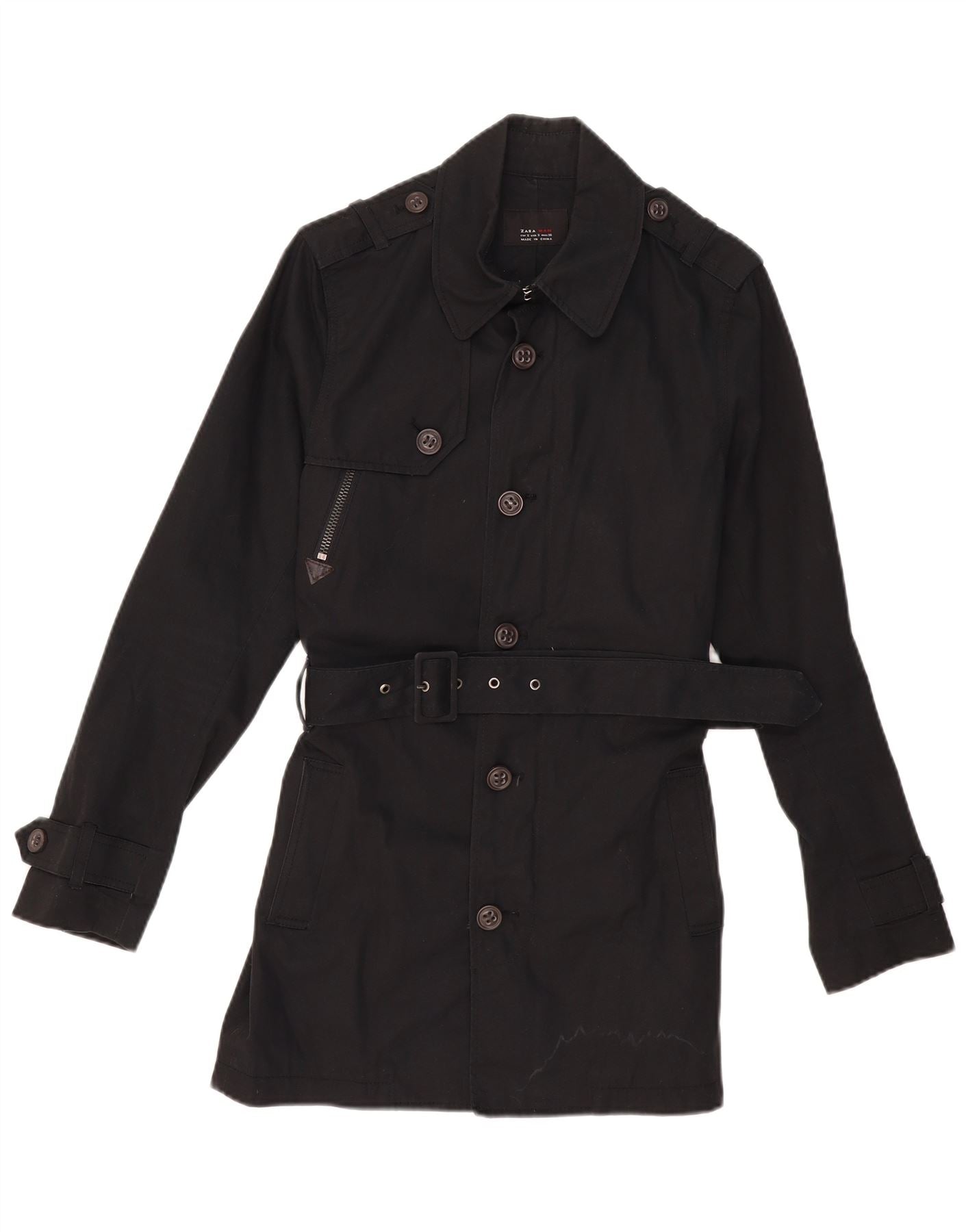 ZARA Herren Trenchcoat UK 36 Small Schwarze Baumwolle