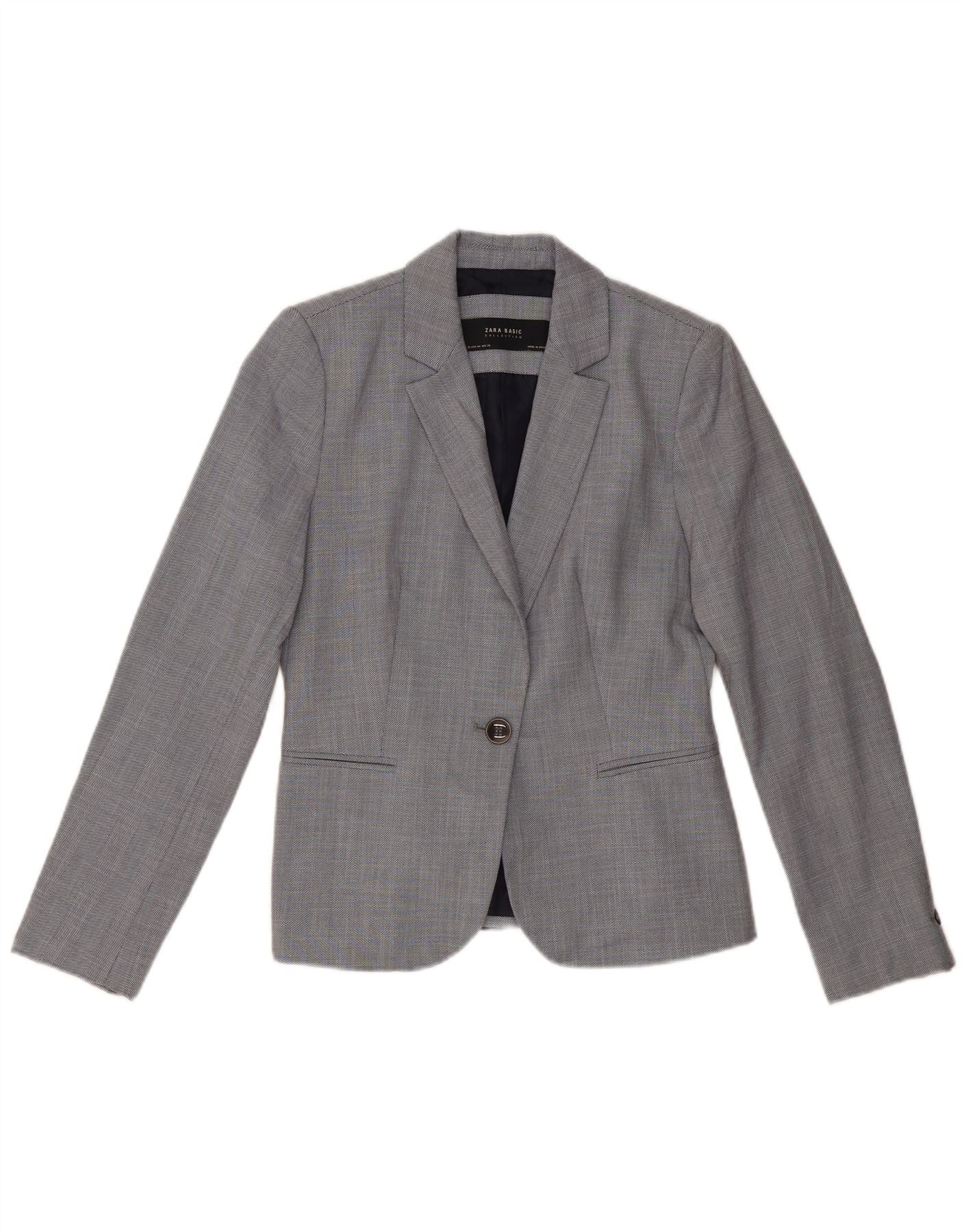 ZARA Damen 1-Knopf-Blazerjacke EU 36 XS Graues Chevron-Polyester