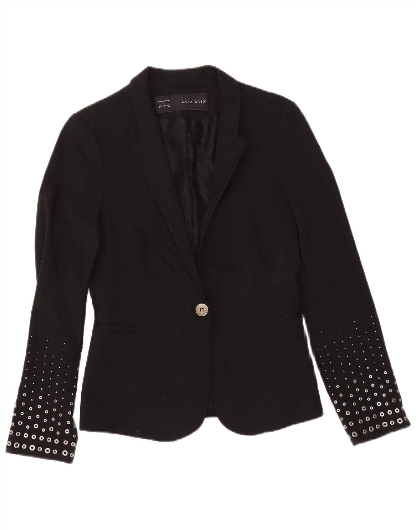 ZARA Damen 1-Knopf-Blazerjacke UK 12 Mittelschwarzes Polyester