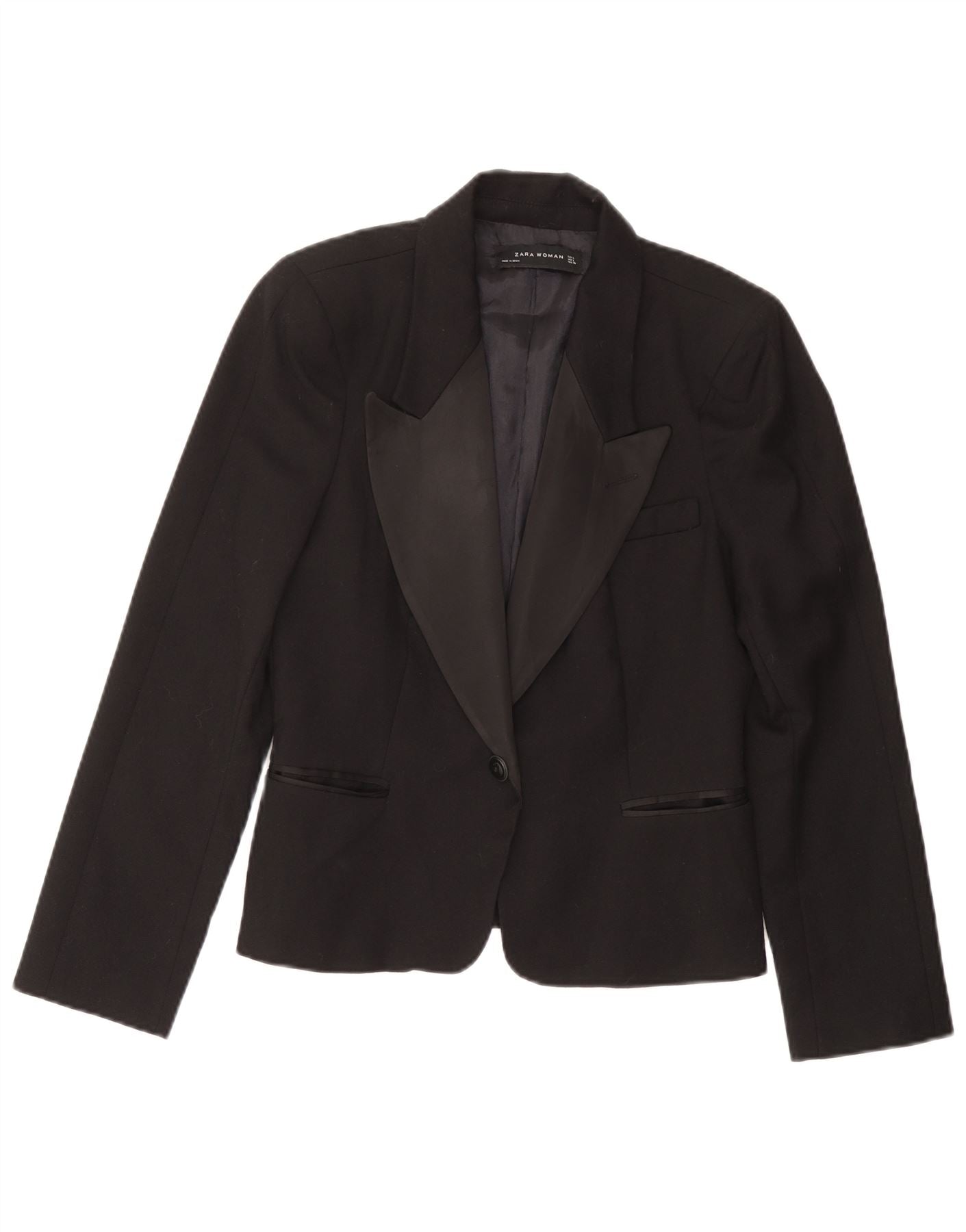 Zara Damen 1-Knopf-Blazerjacke UK 16 Große schwarze Wolle