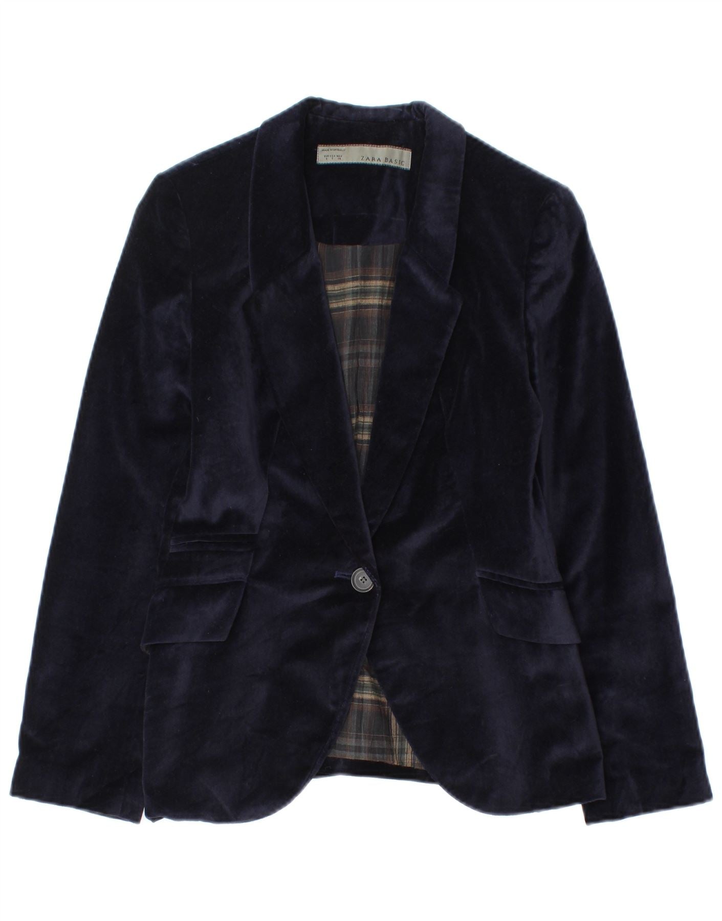 Home > Damen > Depop-Kleidung > Zara Damen-Blazer aus Samt mit 1 Knopf, Gr. 8, Marineblau, Baumwolle