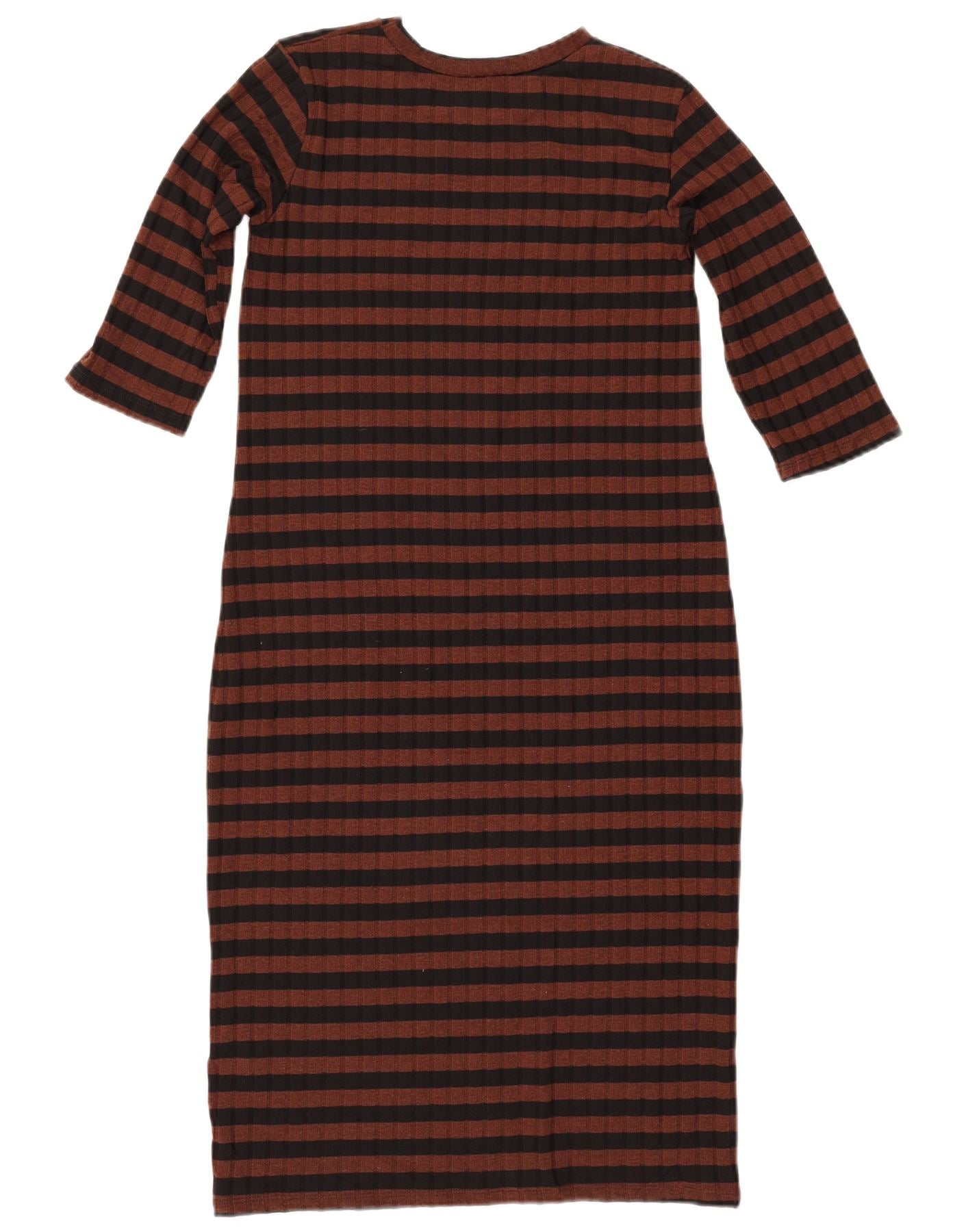 ZARA Damen figurbetontes Kleid mit 3/4-Ärmeln, Größe S, braun, gestreift, Polyester