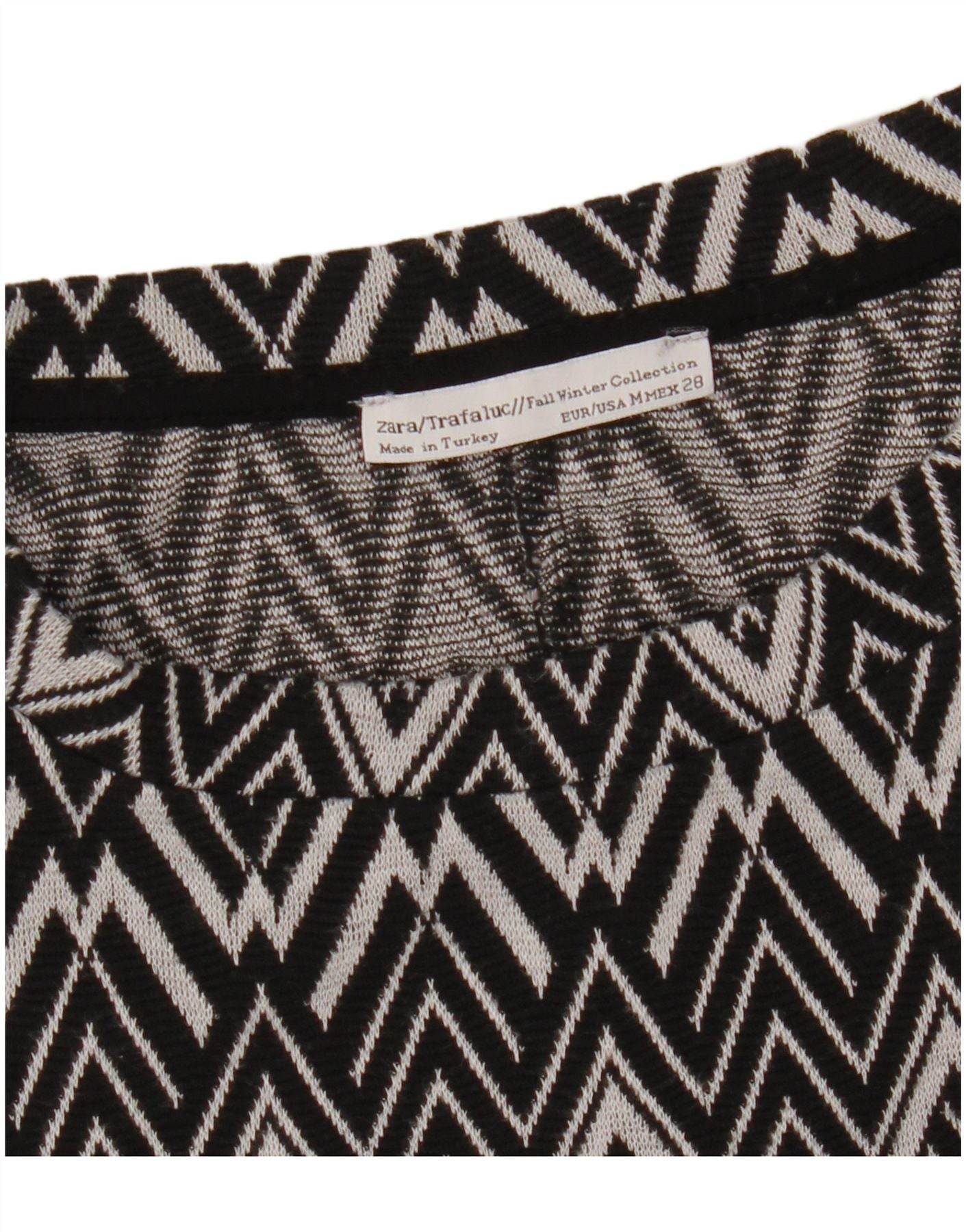 - KI-Beschreibung: Dieses Etuikleid für Damen von Zara ist aus einem bequemen schwarzen Strickstoff gefertigt und weist ein auffälliges schwarz-weißes geometrisches Muster auf. Es hat einen klassischen Rundhalsausschnitt und praktische 3/4-Ärmel. Die reguläre Passform bietet eine bequeme, moderne Silhouette. Das kräftige geometrische Muster sorgt für einen modernen visuellen Reiz. Dieser Pullover-Stil sorgt für müheloses Tragen.