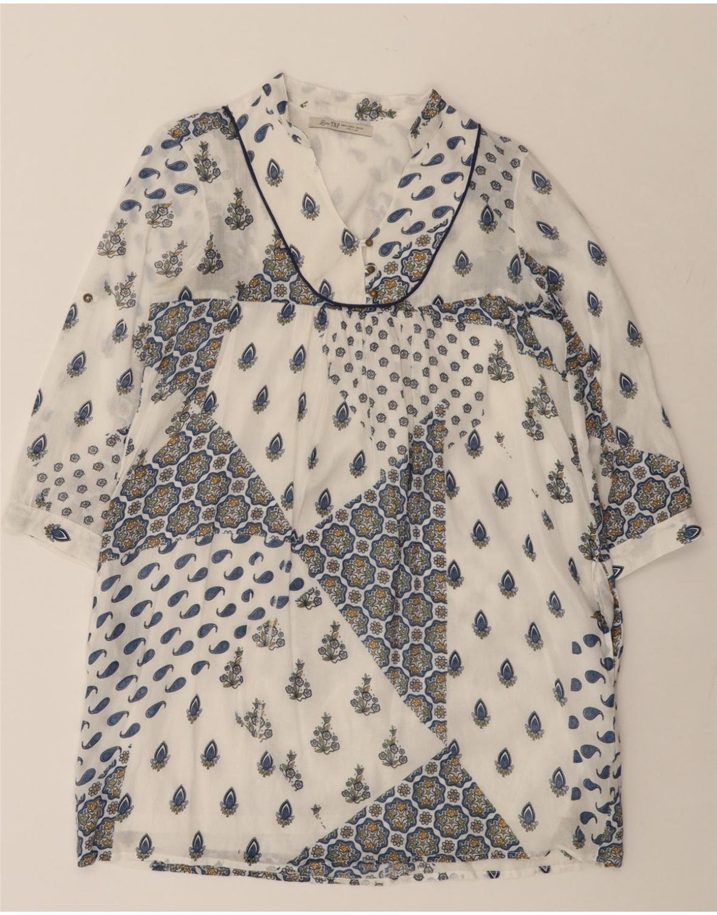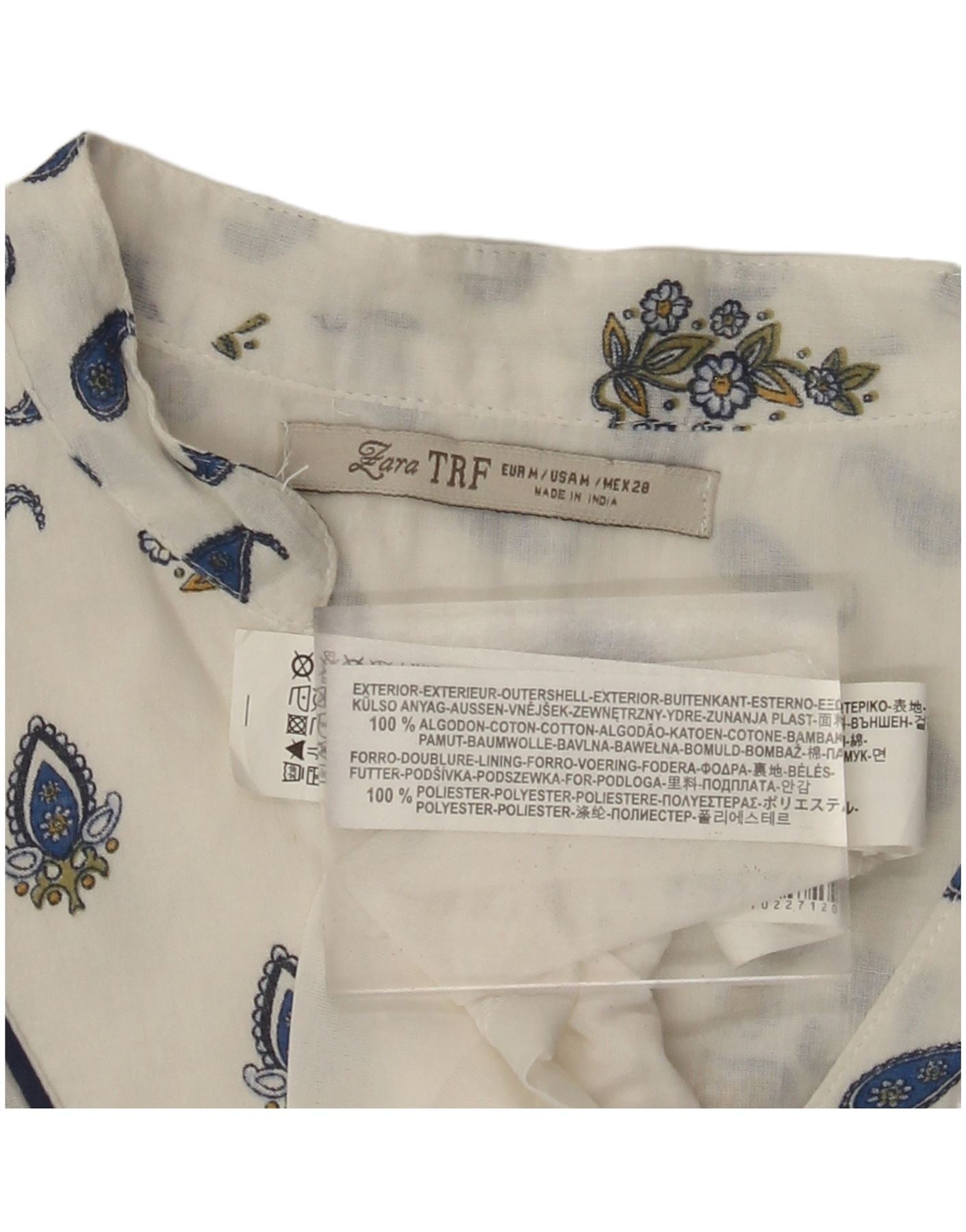 ZARA Damen Etuikleid mit 3/4-Ärmeln, UK 12, Mittelweiß, Paisley-Baumwolle