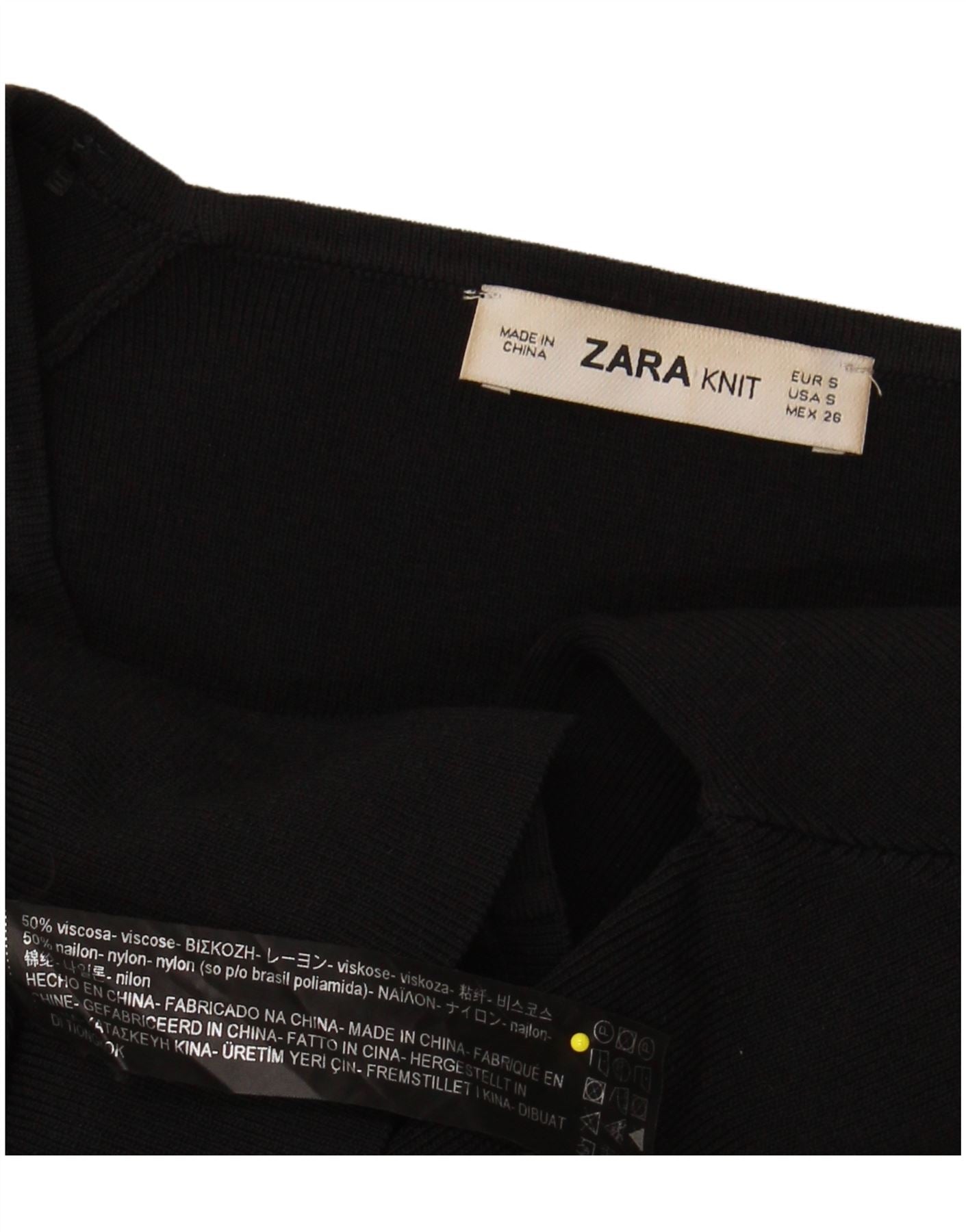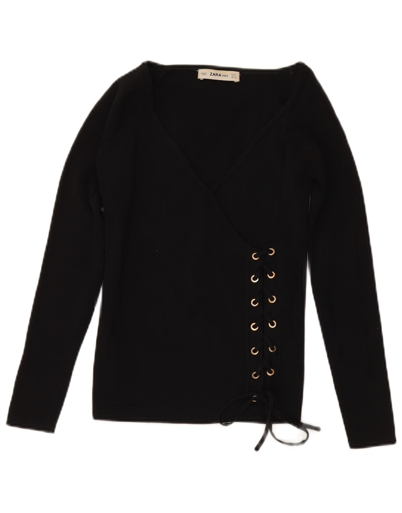 ZARA Damen-Pullover mit 3/4-Ärmeln und V-Ausschnitt, Gr. 10, Größe S, schwarze Viskose