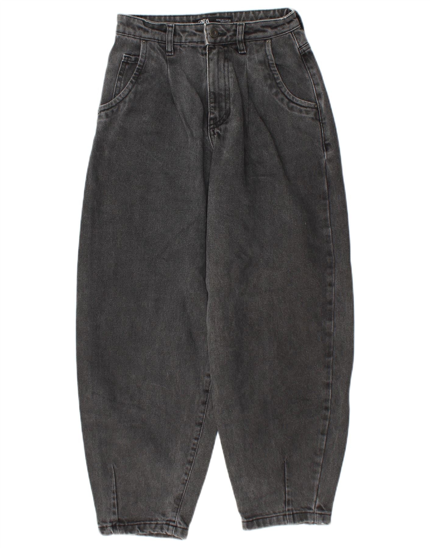 ZARA Damen Balloon Crop High Waist Jeans EU 34 2XS W24 L25 Grau