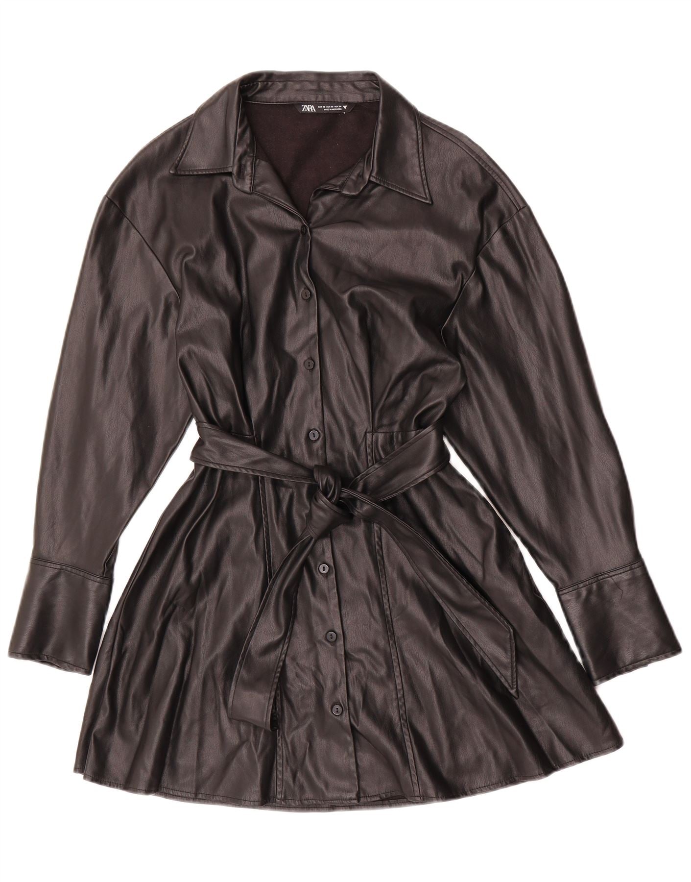 ZARA Damen-Hemdbluse aus Kunstleder mit Fledermausärmeln, UK 6, XS, Schwarz, Polyurethan