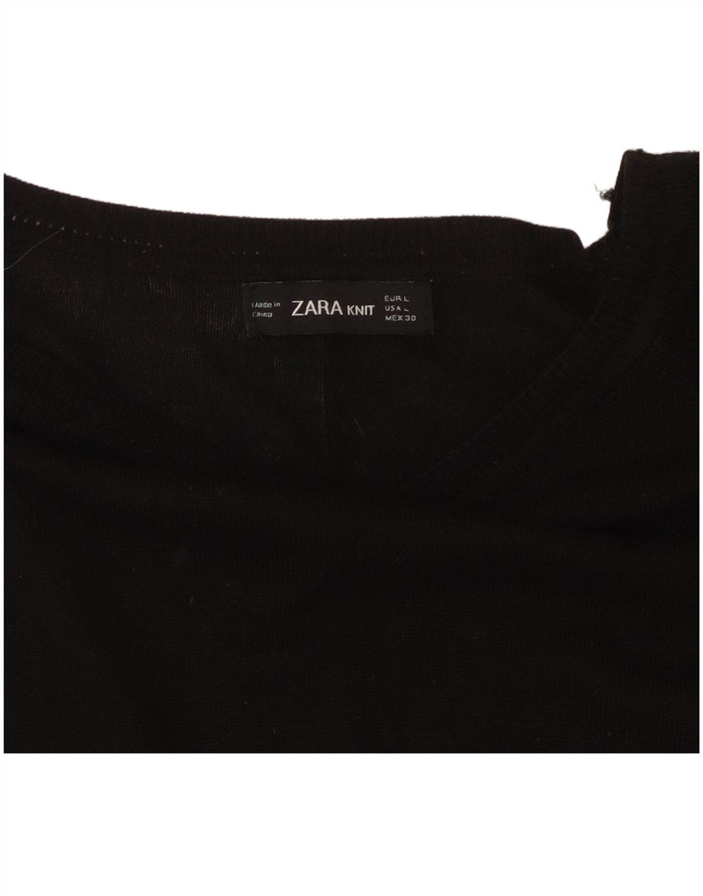 ZARA Damen-Pullover mit U-Boot-Ausschnitt, Gr. 44, Größe L, Schwarz, Synthetik
