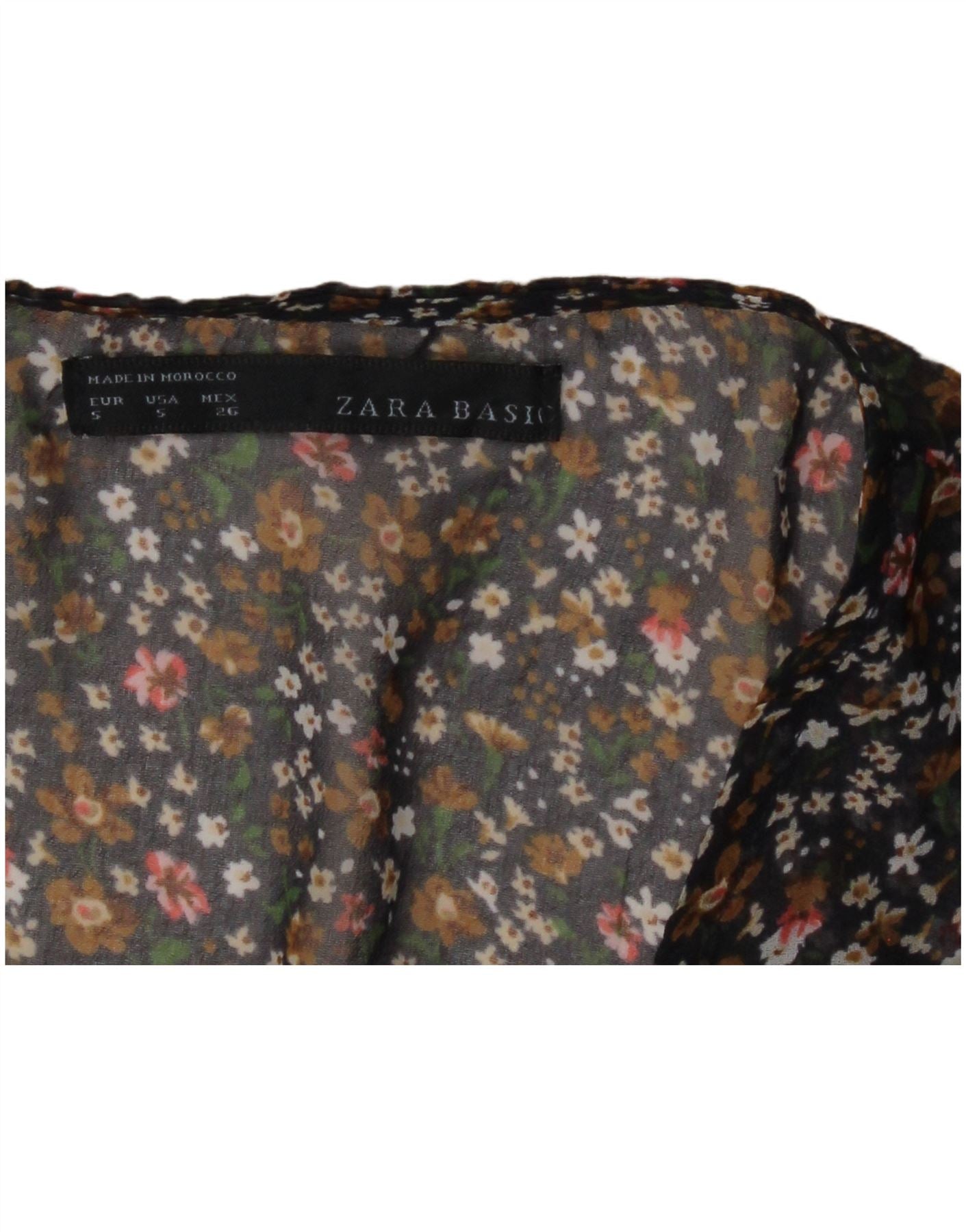 ZARA Womens Bow Tie Sleeveless See Through Top UK 10 Small Black Floral