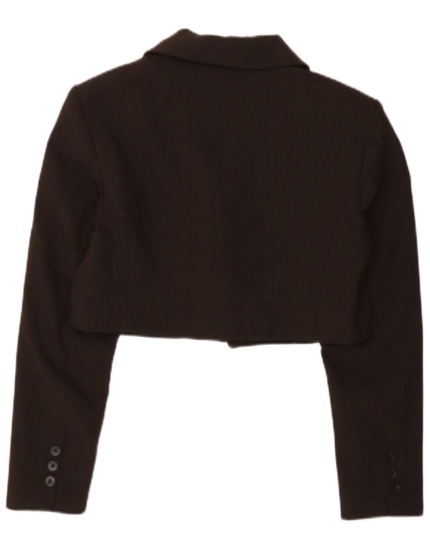 Zara Damen Crop 1 Button Blazer Jacke UK 16 Large Brown Check Polyester
