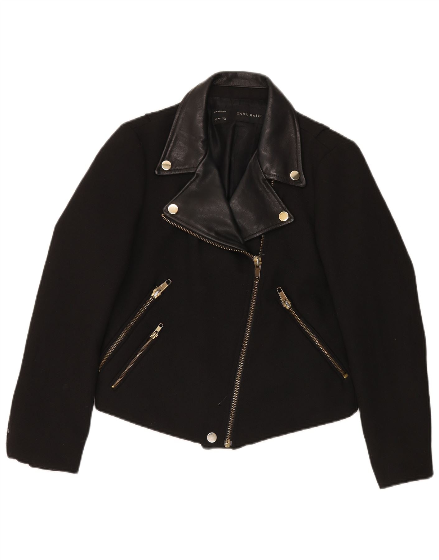 ZARA Damen Crop Bikerjacke UK 14 Large Schwarz