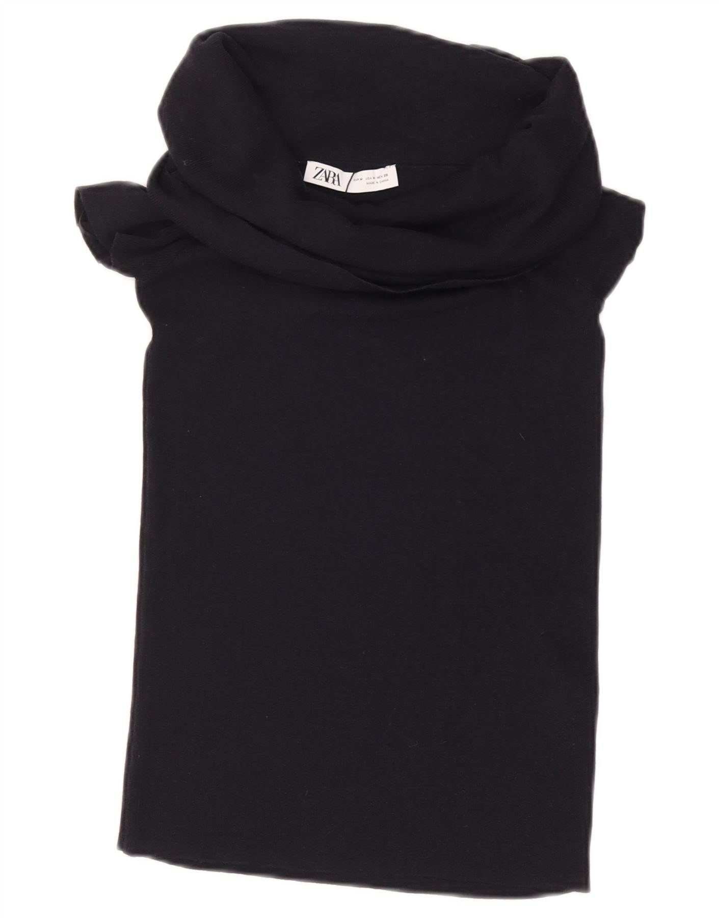 ZARA Damen Crop Bluse Top UK 12 Medium Schwarz Viskose