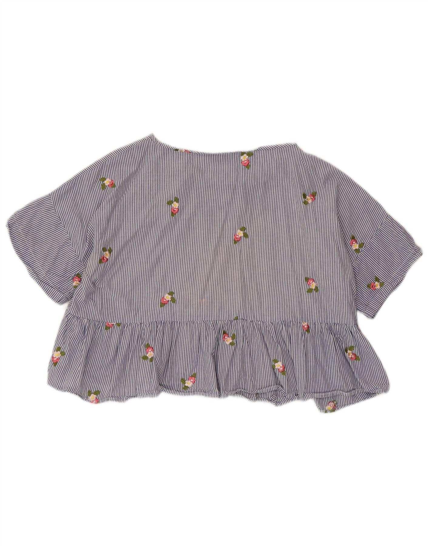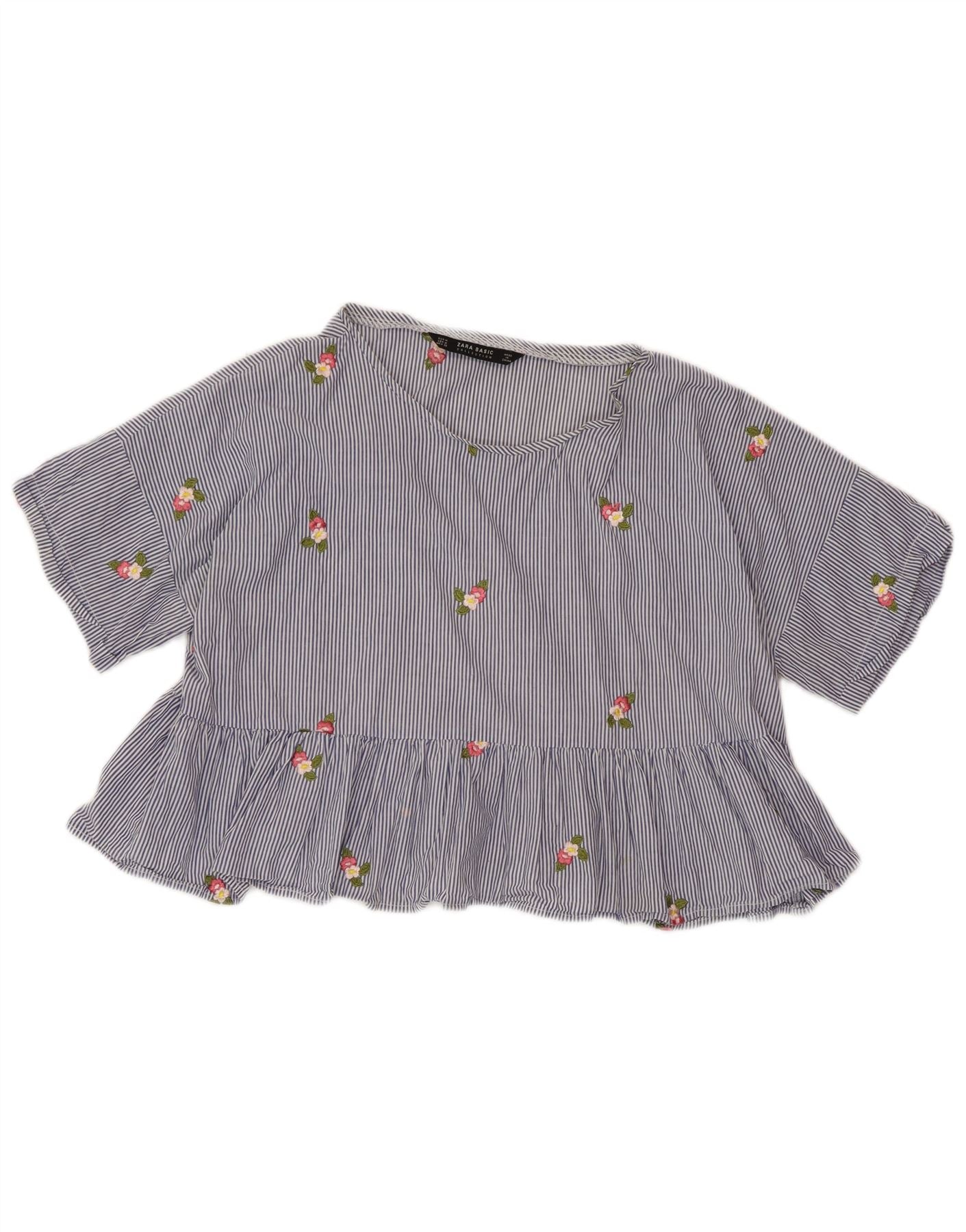 ZARA Damen Crop Bluse Top UK 14 Mittelblauer Nadelstreifen