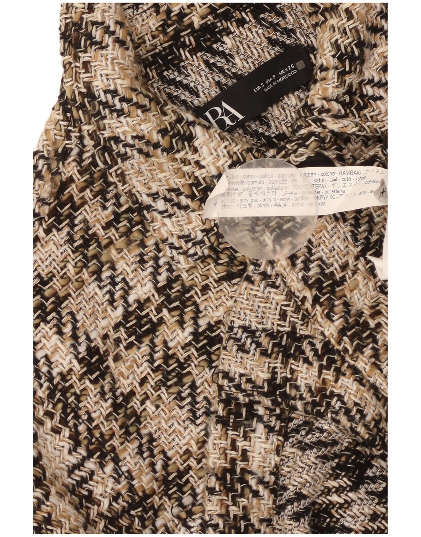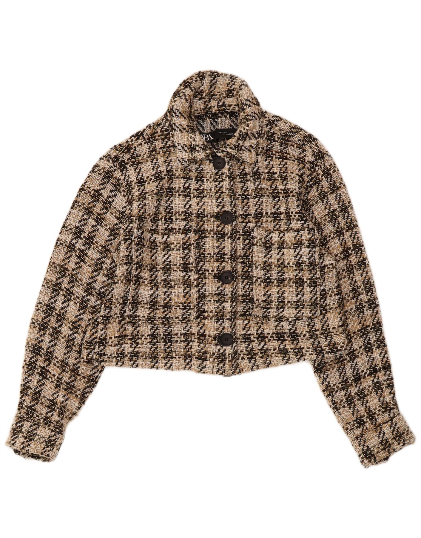 ZARA Damen Crop Bomberjacke UK 10 Small Beige Check Baumwolle