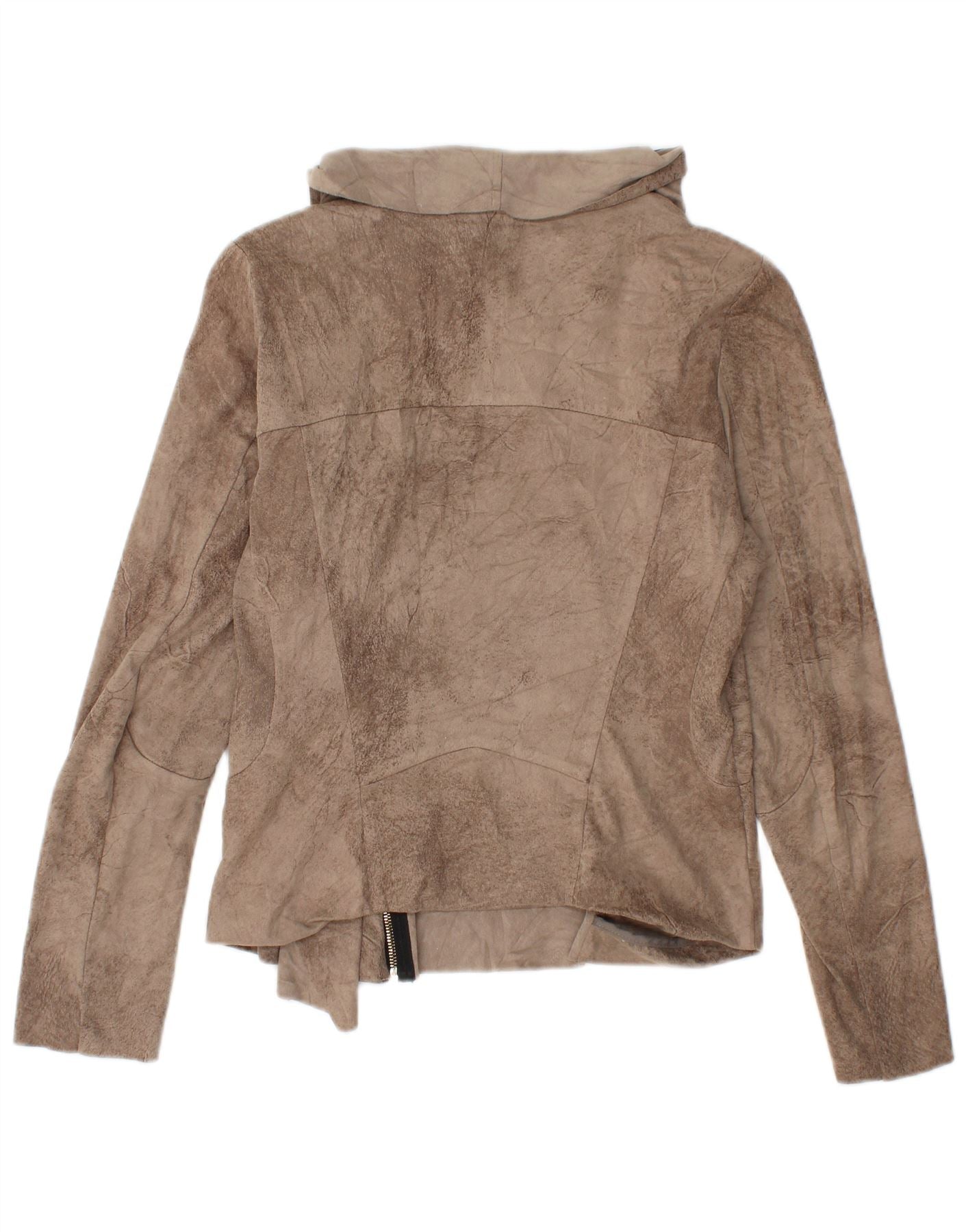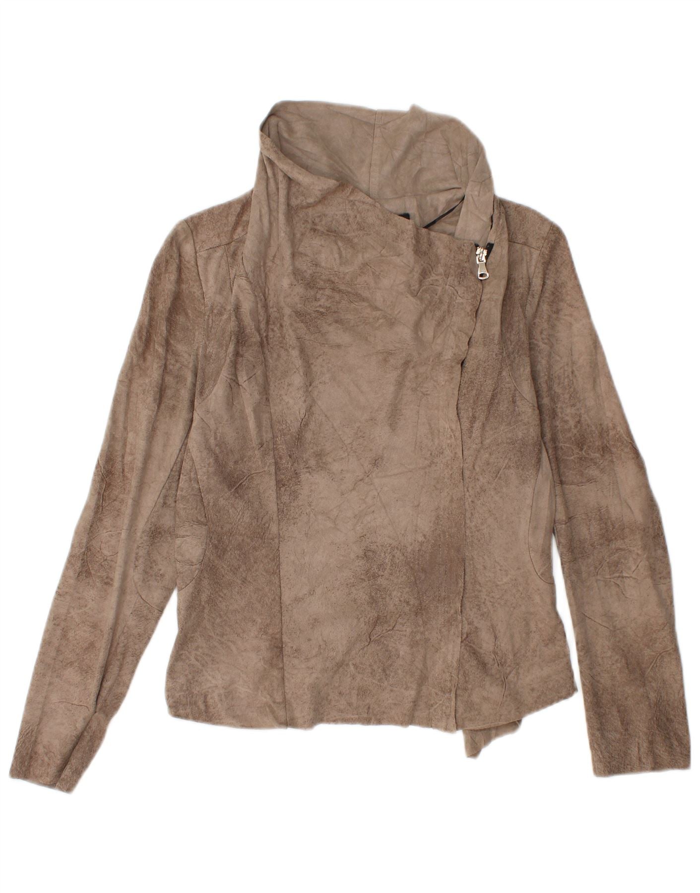 ZARA Damen Crop Bomberjacke UK 14 Large Braunes Batik-Polyester
