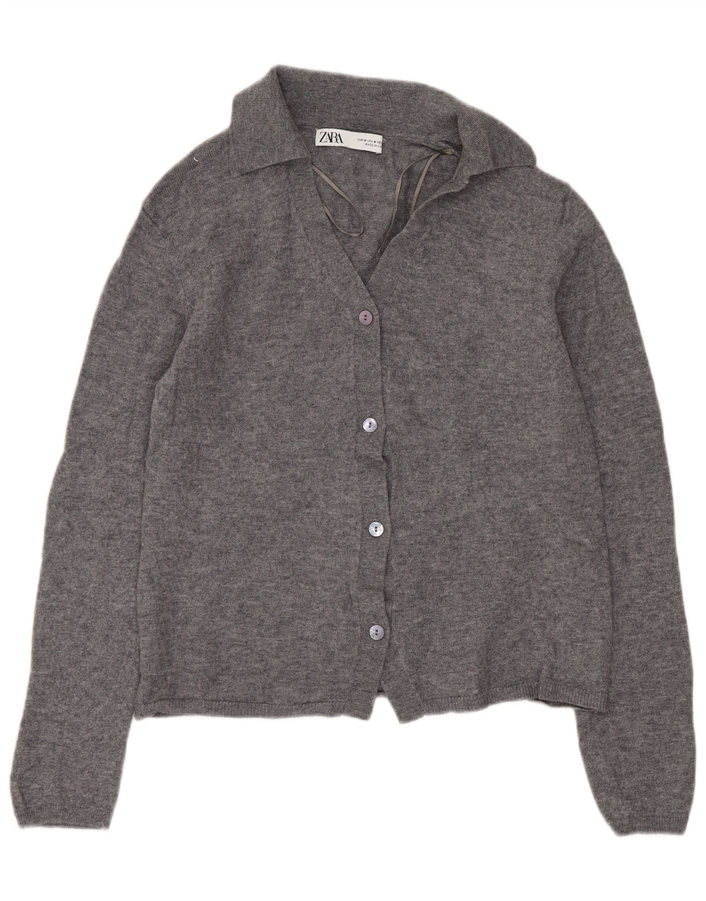 ZARA Damen Crop Cardigan Pullover UK 12 Mittelgrau