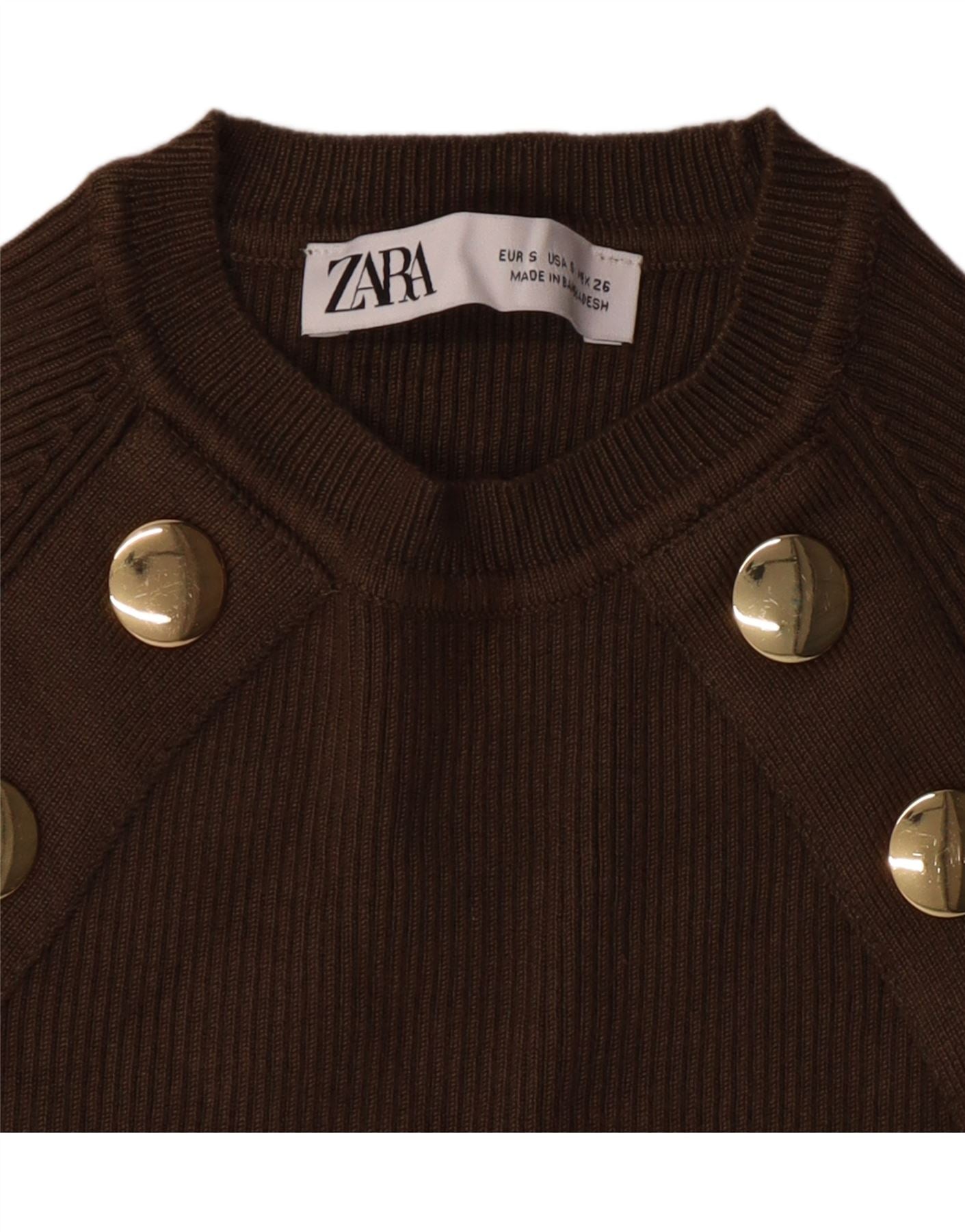 ZARA Damen Crop Crew Neck Pullover Pullover UK 8 Small Khaki
