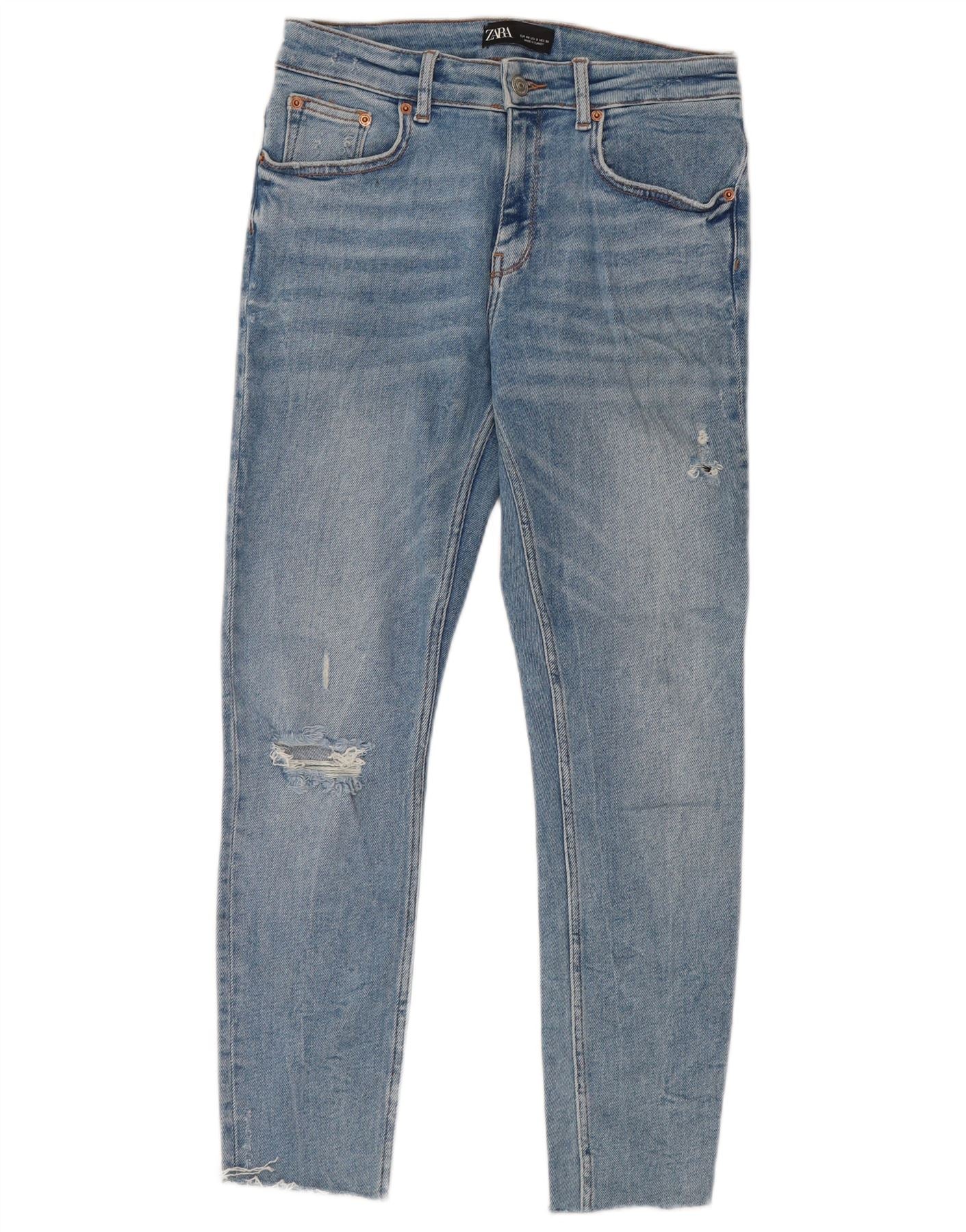 ZARA Damen Crop Distressed Skinny Jeans EU 40 Medium W30 L26 Blaue Baumwolle