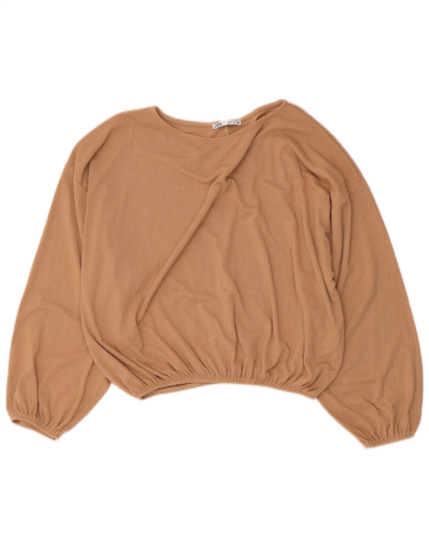 ZARA Womens Crop Oversized Blouse Top UK 14 Medium Beige Viscose