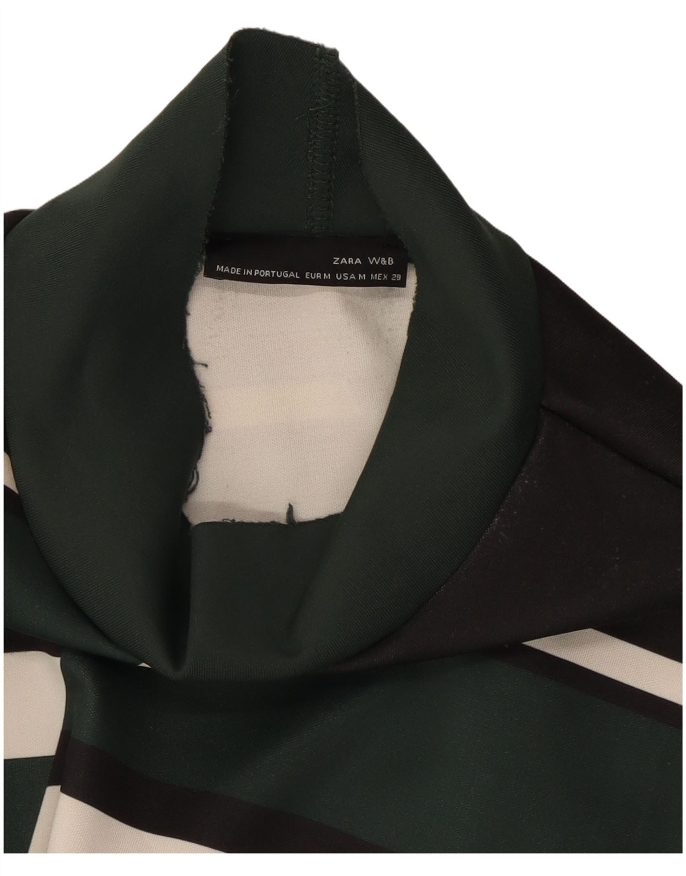ZARA Damen Crop Top 3/4 Ärmel UK 12 Mittelgrün Farbblock