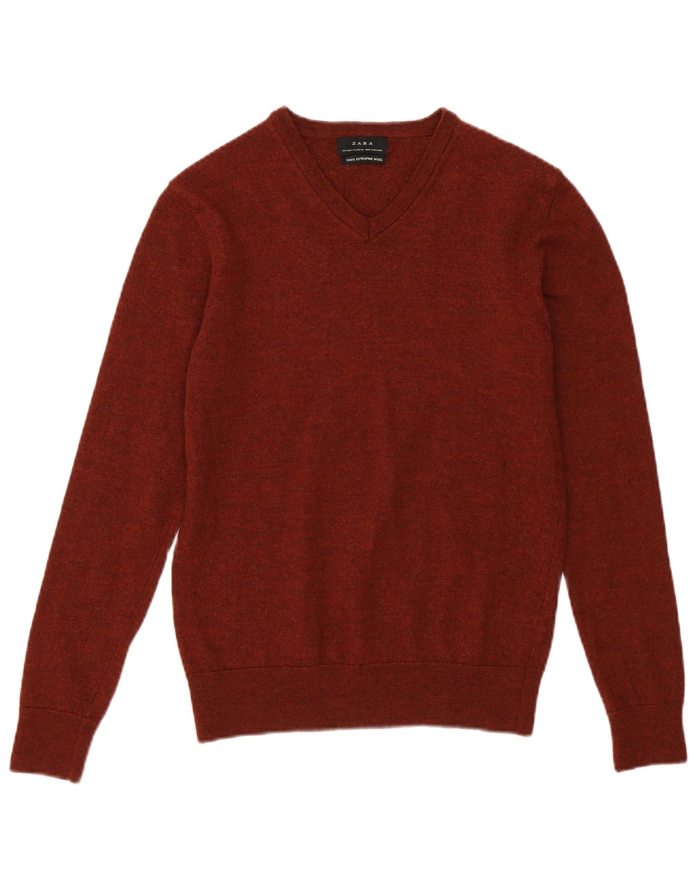 ZARA Damen Crop V-Ausschnitt Pullover Pullover UK 12 Mittelbraune Wolle
