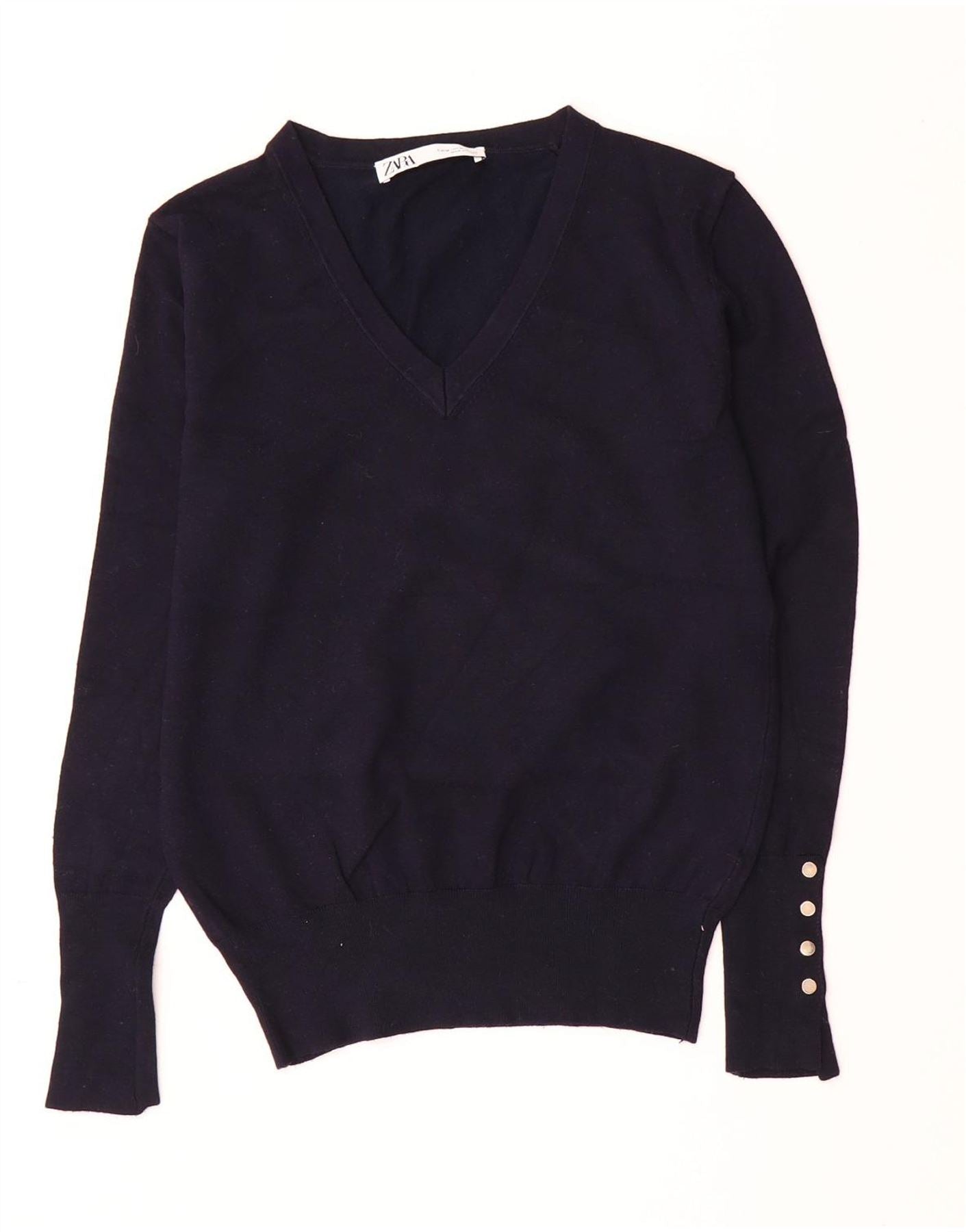 ZARA Damen Crop V-Ausschnitt Pullover Pullover UK 12 Medium Marineblau