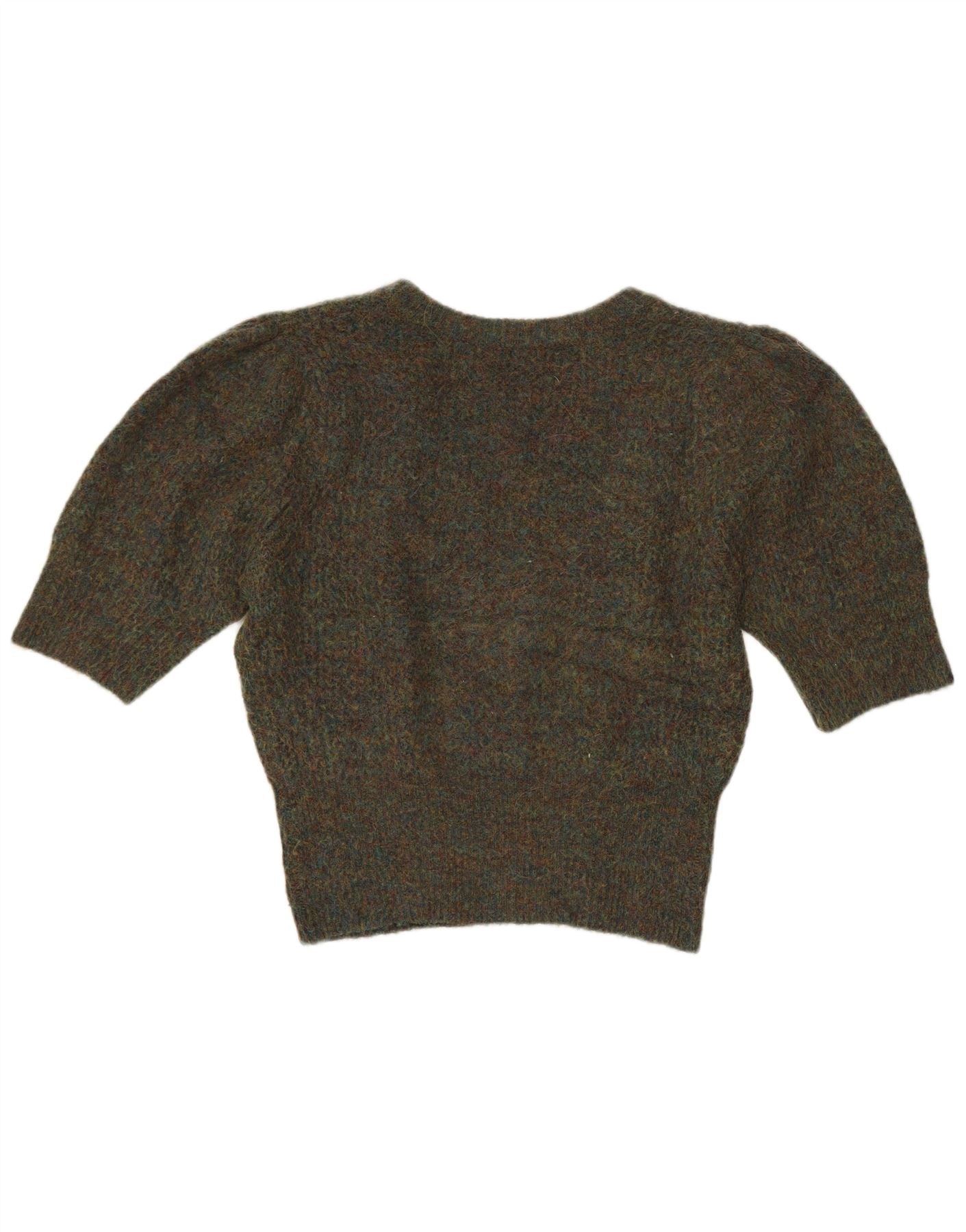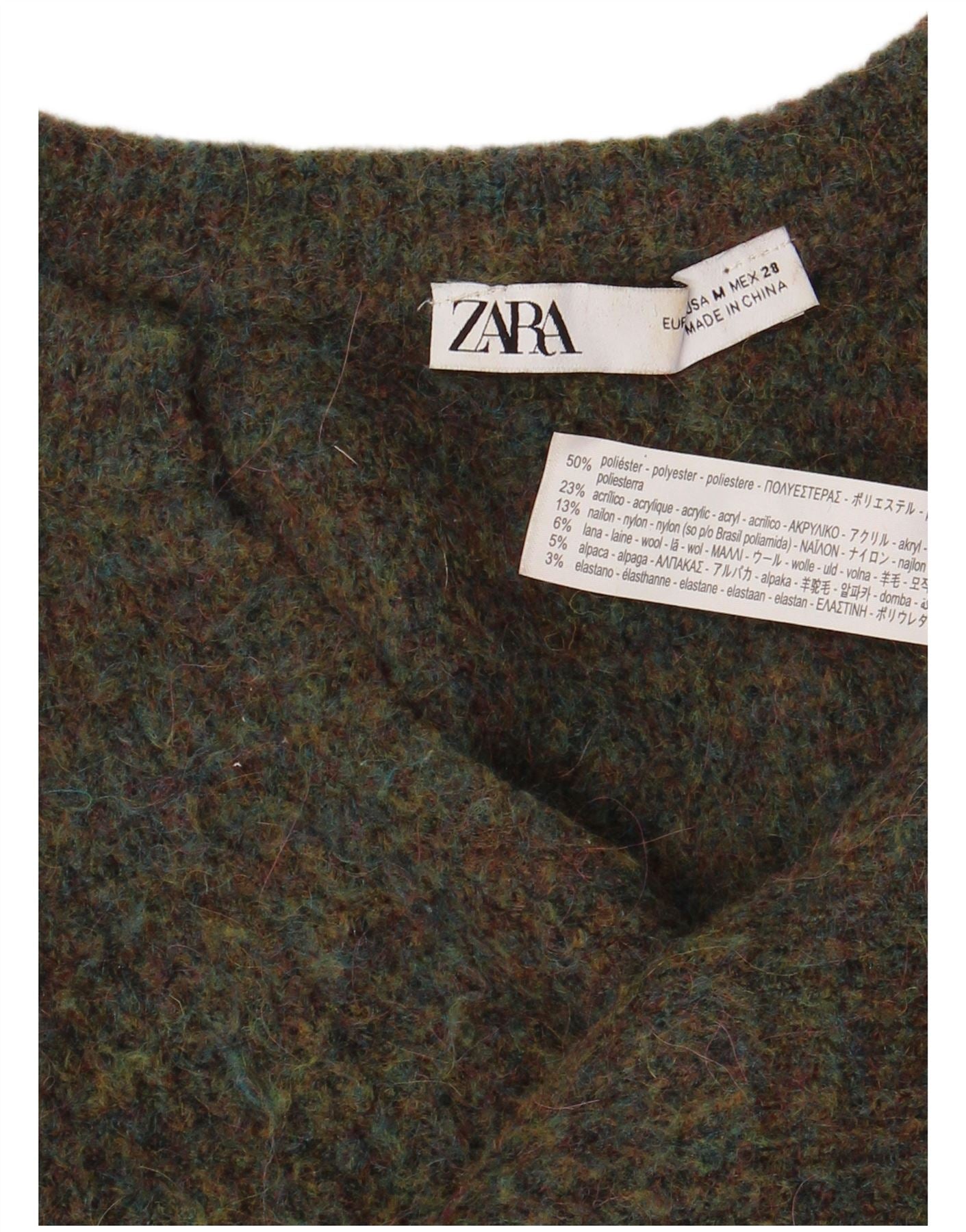 Zara Damen Crop V-Ausschnitt Pullover Pullover UK 14 Medium Khaki Flecked