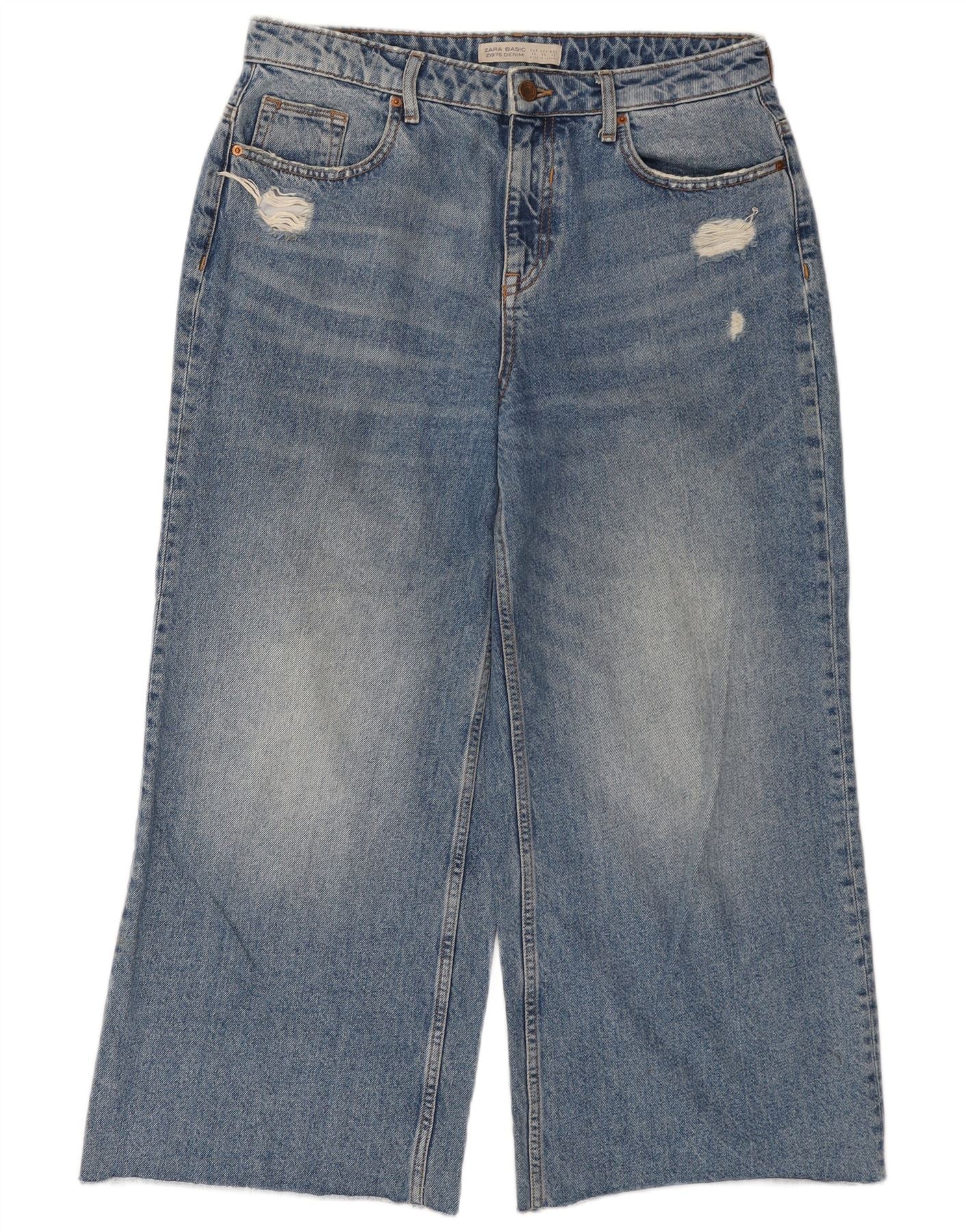 ZARA Damen Distressed Crop Wide Leg Jeans EU 40 Medium W30 L25 Blau
