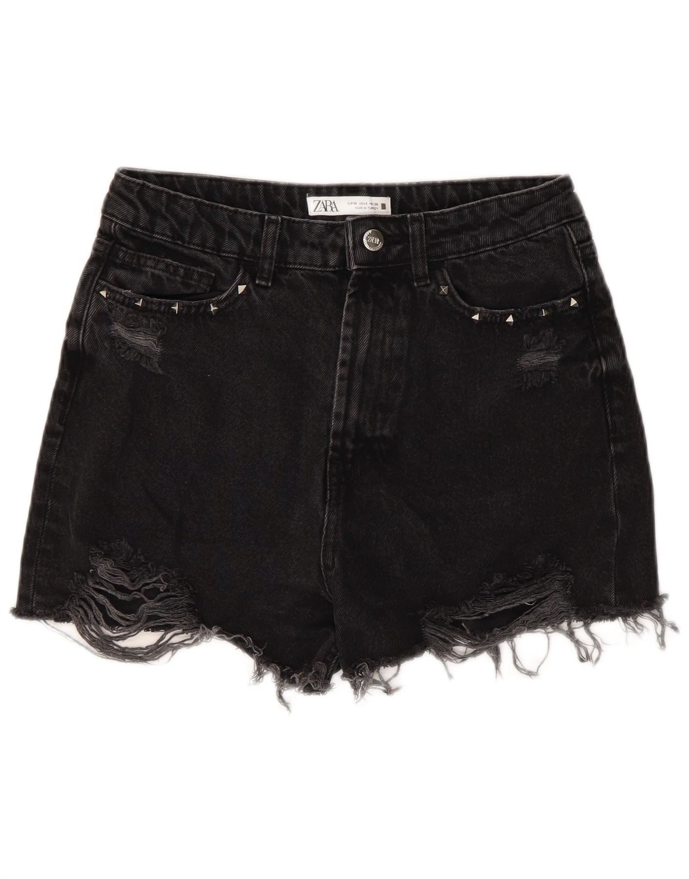 ZARA Damen Distressed Denim Shorts EU 38 Small W28 Schwarz