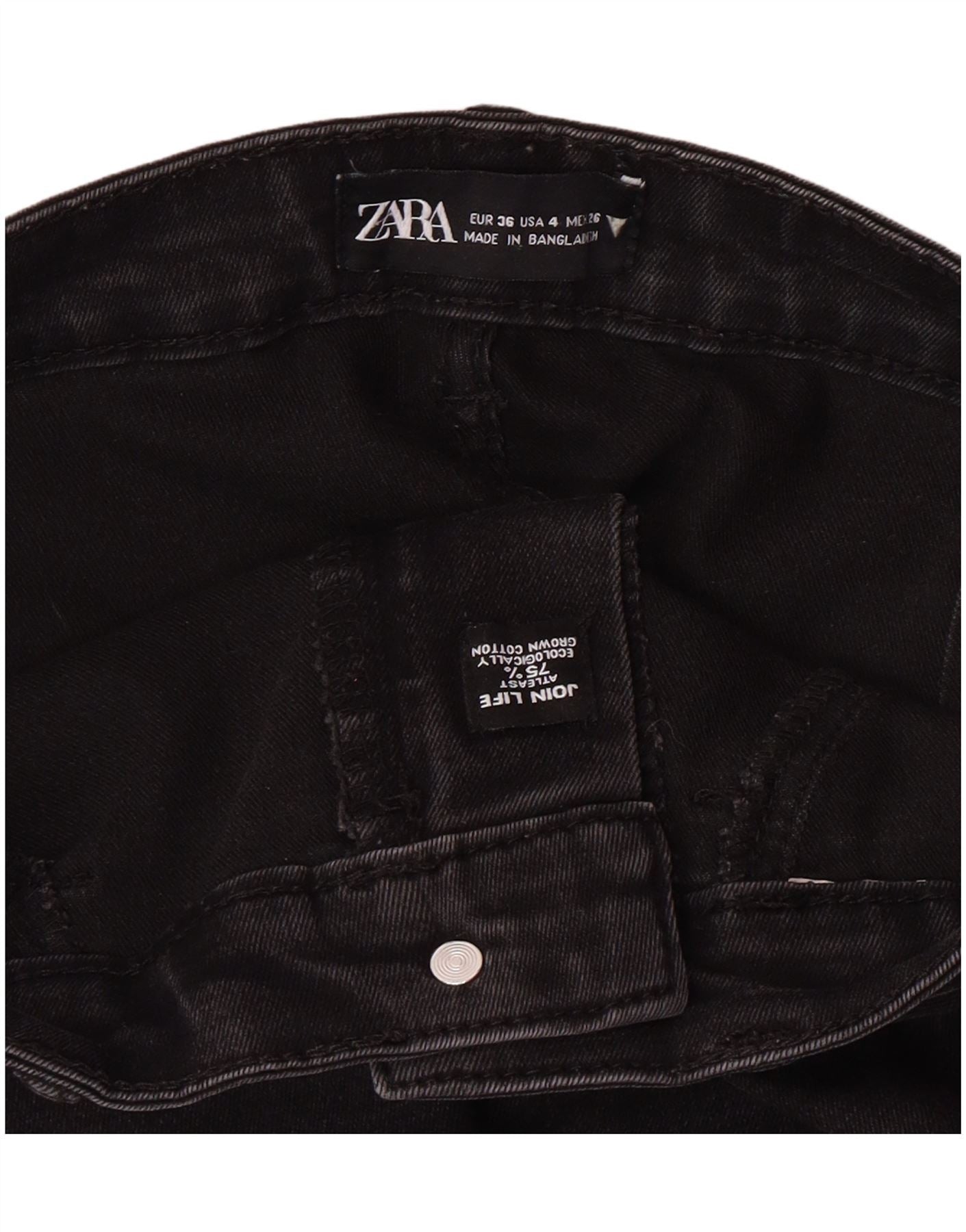 - KI-Beschreibung: Diese Röhrenjeans für Damen von Zara sind aus schwarzem Stretch-Denim gefertigt. Die hohe Taille und der Knopfverschluss sorgen für eine schmeichelhafte Silhouette. Ihre schmale Passform und die Stretch-Funktion bieten Komfort und Flexibilität. Diese moderne Jeans, hergestellt in Bangladesch, verfügt über praktische Taschen. Das klare Design macht sie zu einem vielseitigen Grundbestandteil der Garderobe.