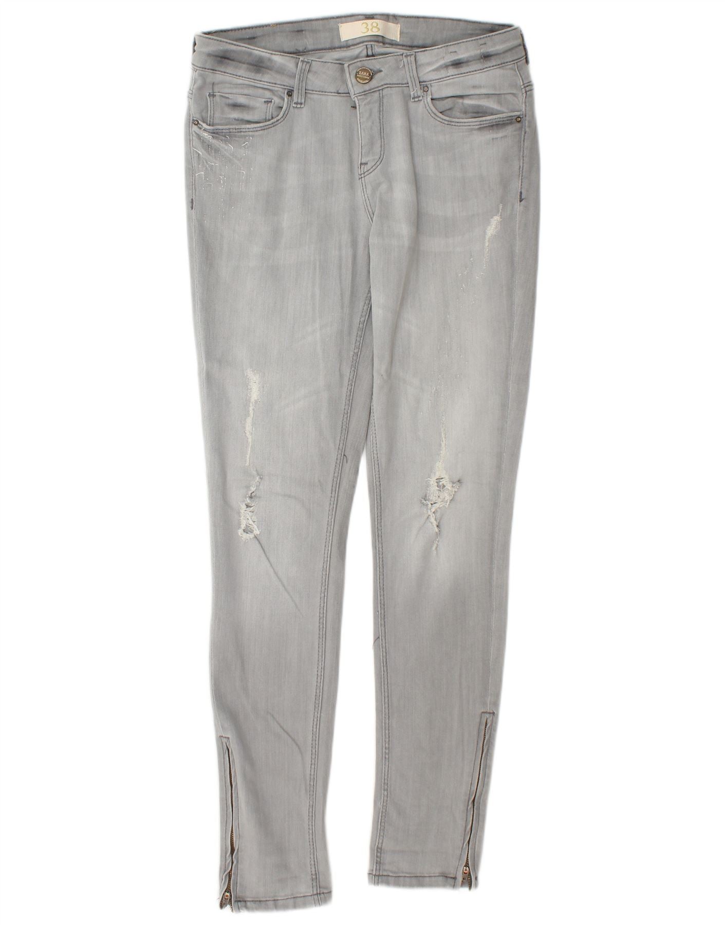 ZARA Damen Distressed Skinny Jeans EU 38 Small W28 L30 Graue Baumwolle
