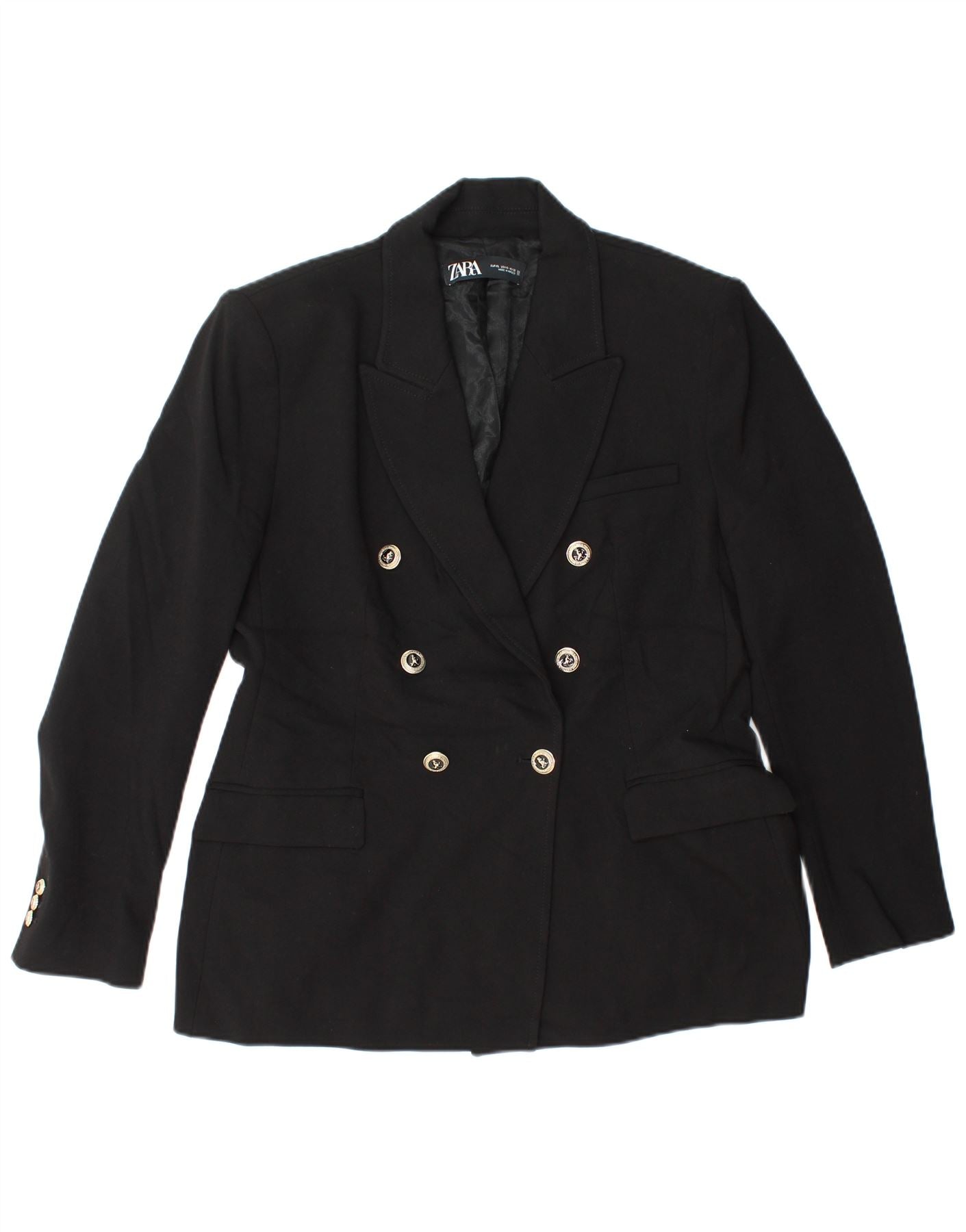 ZARA Damen Zweireiher-Blazerjacke UK 18 XL Schwarz Polyester