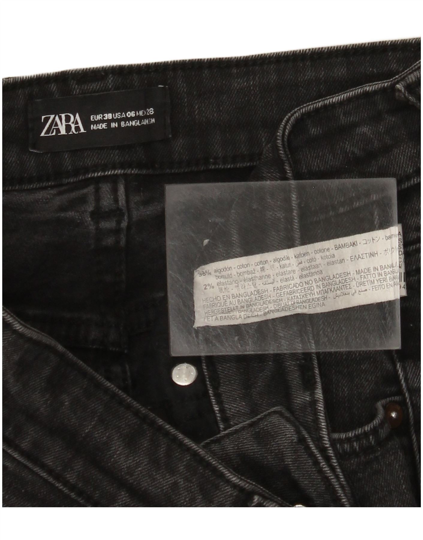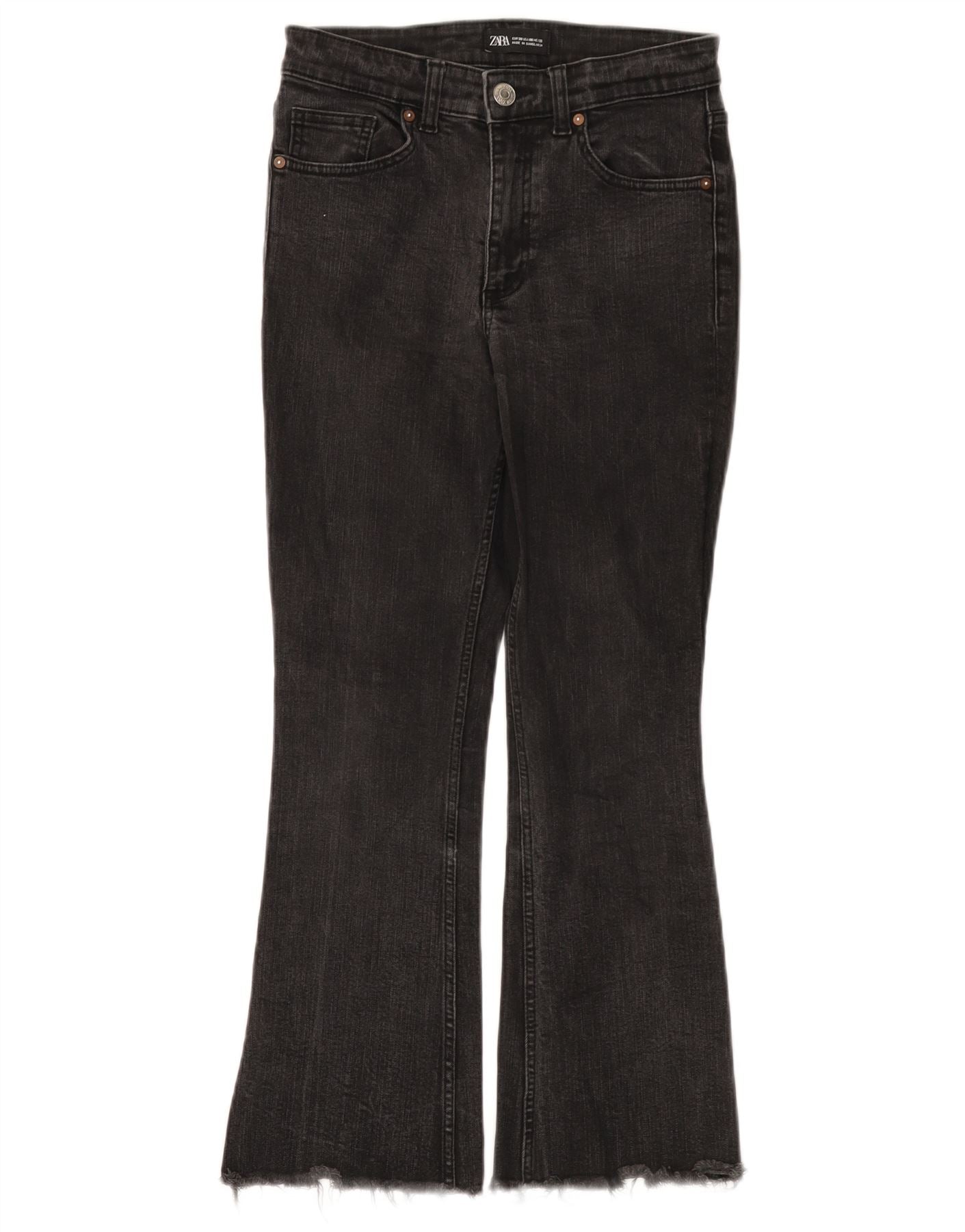 ZARA Damen Schlagjeans EU 38 Small W28 L25 Schwarze Baumwolle