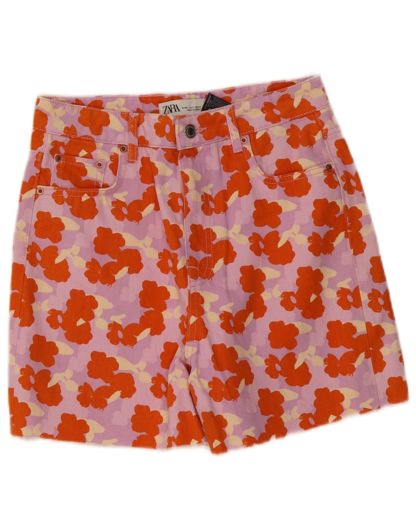 ZARA Damen-Jeansshorts mit hoher Taille, EU 36, Größe S, W26, mehrfarbig, Blumenmuster