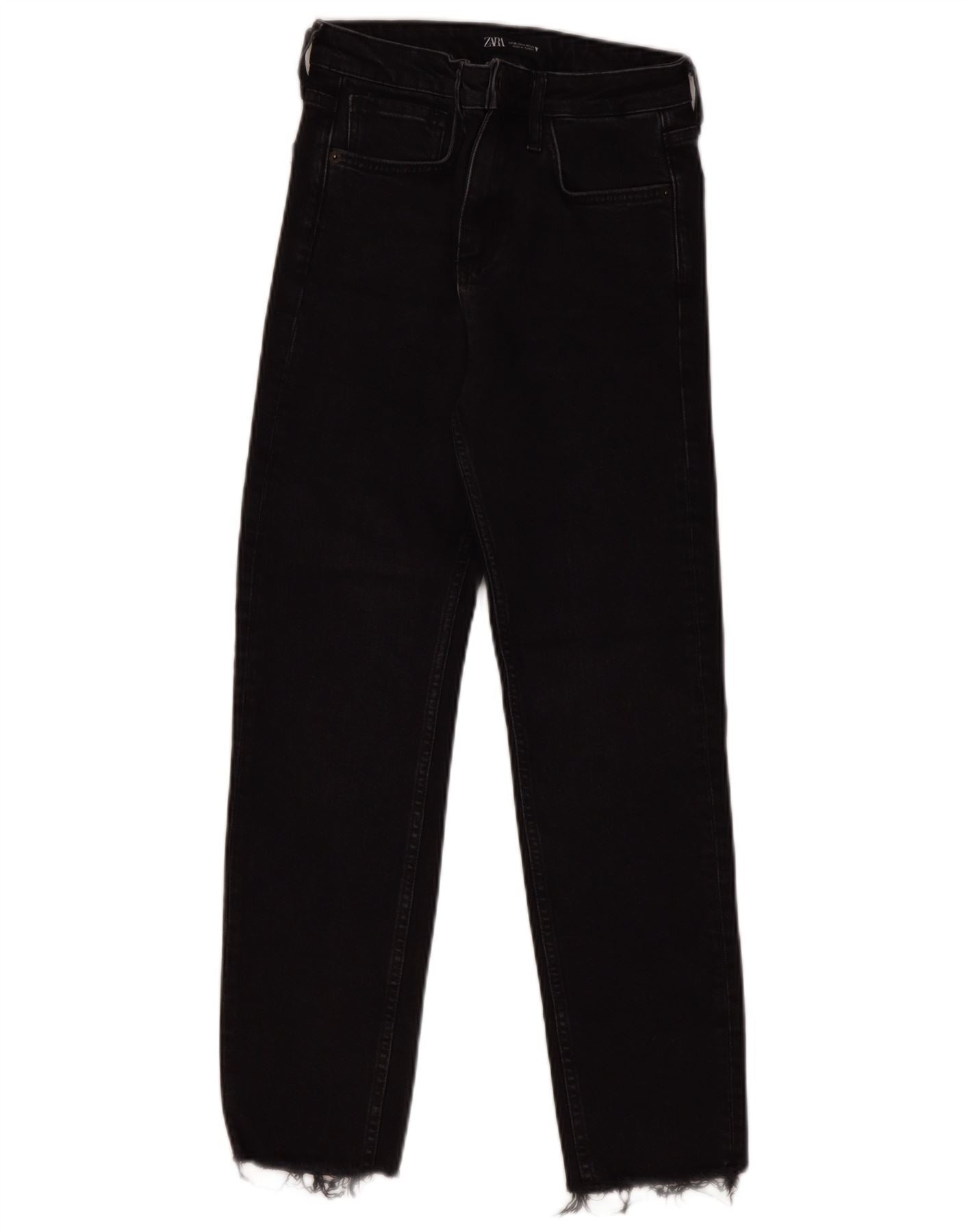 ZARA Damen High Waist Straight Jeans EU 36 XS W26 L27 Schwarz