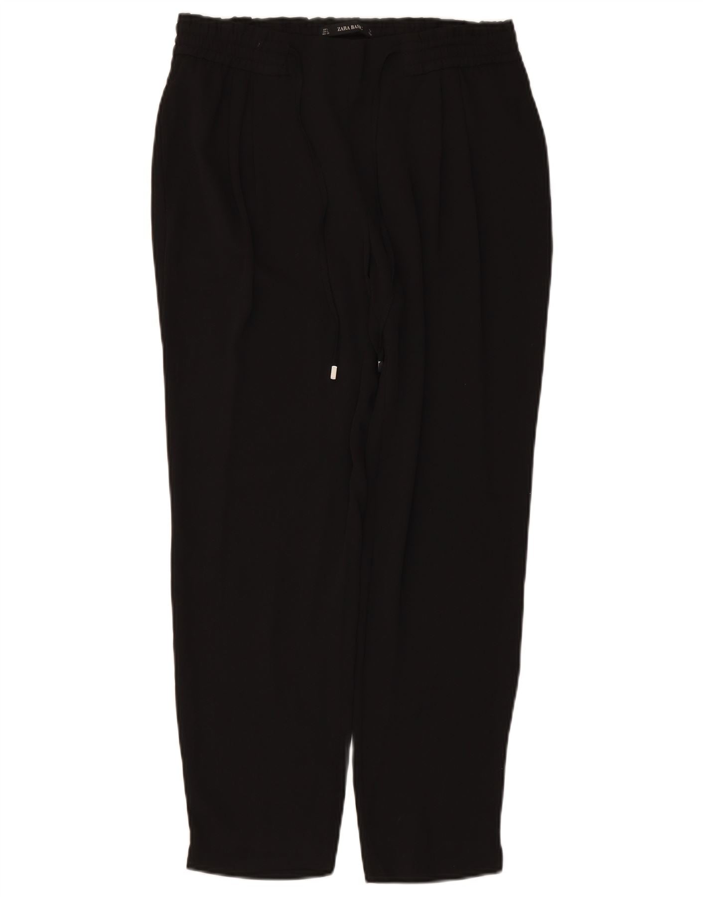 ZARA Damen-Hosen mit hoher Taille, schmal zulaufende, kurze Hose, UK 16, Größe L, W34, L27, Schwarz