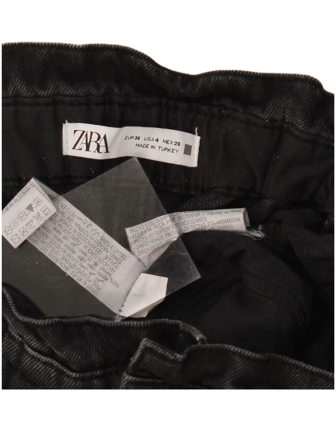 ZARA Damen High Waist Tapered Jeans EU 36 XS W26 L24 Schwarze Baumwolle