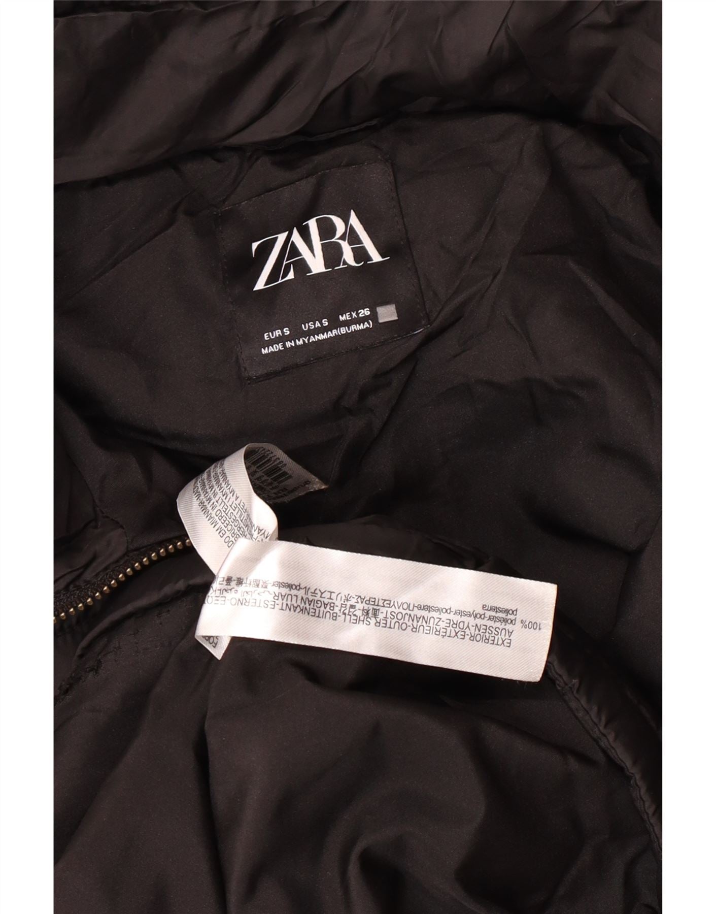 ZARA Damen Wattierte Jacke mit Kapuze UK 10 Small Schwarz Polyester