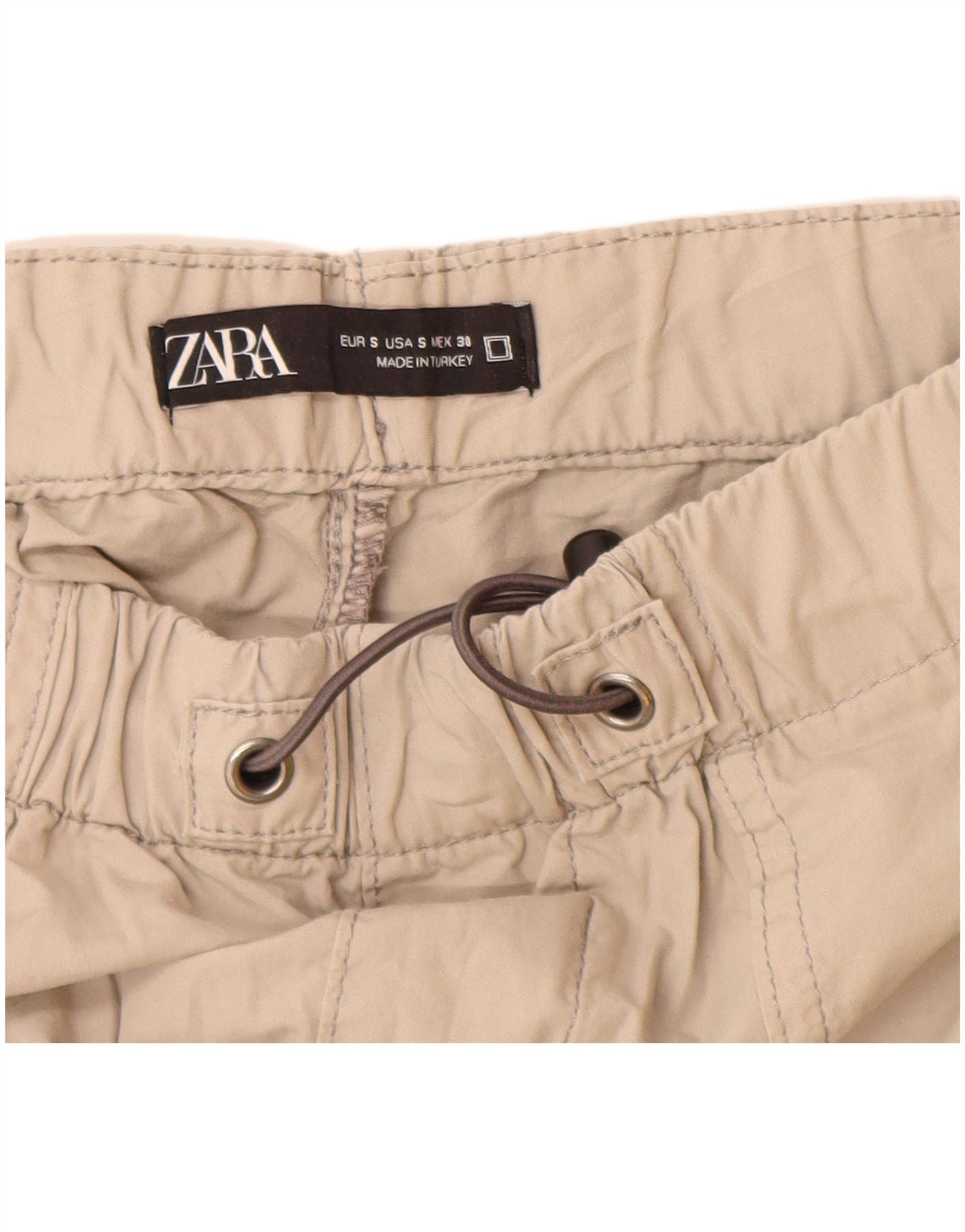 Zara Damen-Jogger-Cargohose, Größe S, W30, L29, Beige, Baumwolle