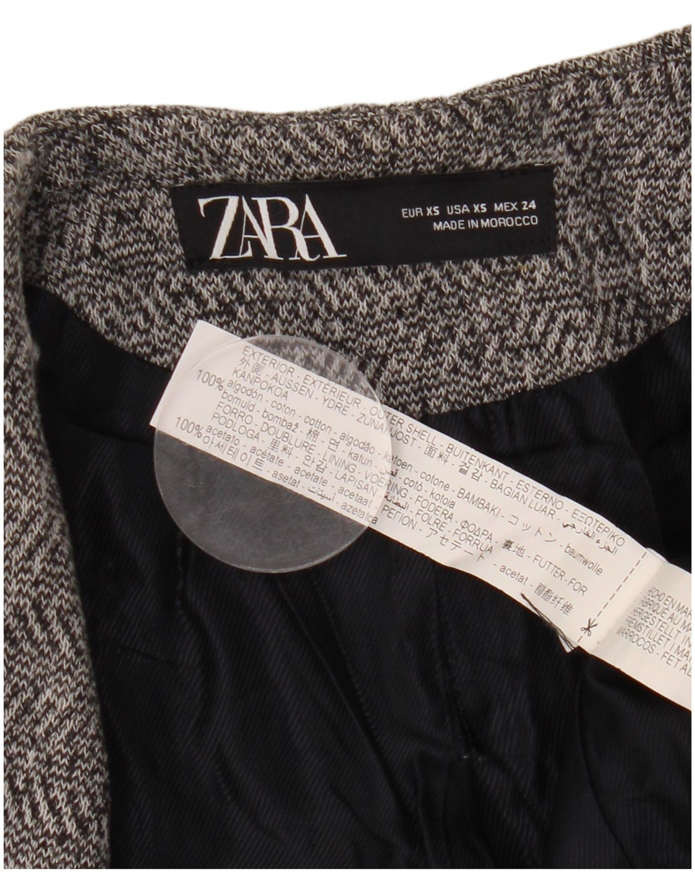 ZARA Damen Strick-Longline-Blazerjacke UK 6 XS Graue Herringbone-Baumwolle
