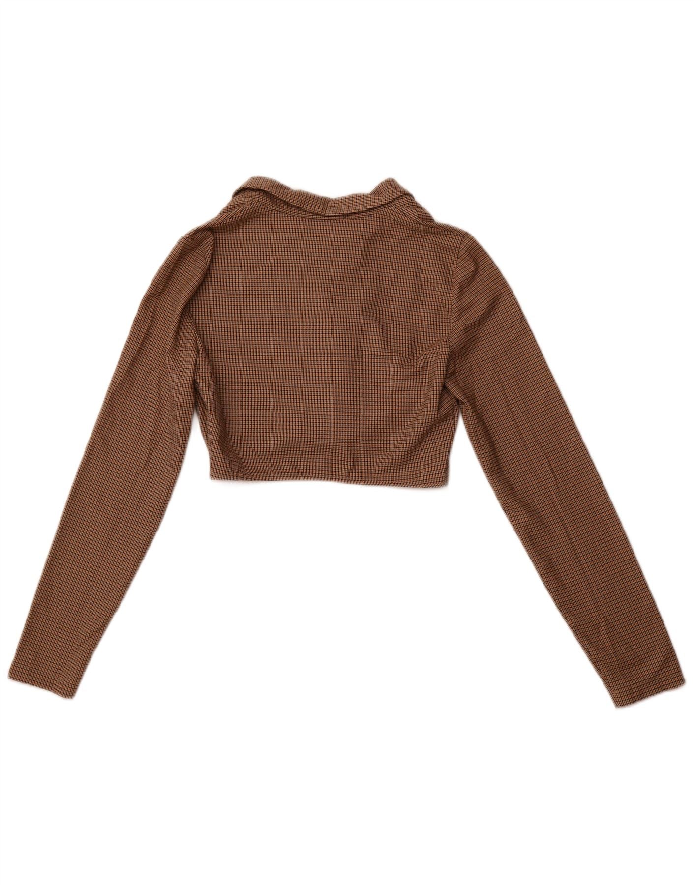 ZARA Damen Langarm-Crop-Top UK 12 Mittelbraunes Hahnentritt-Polyester