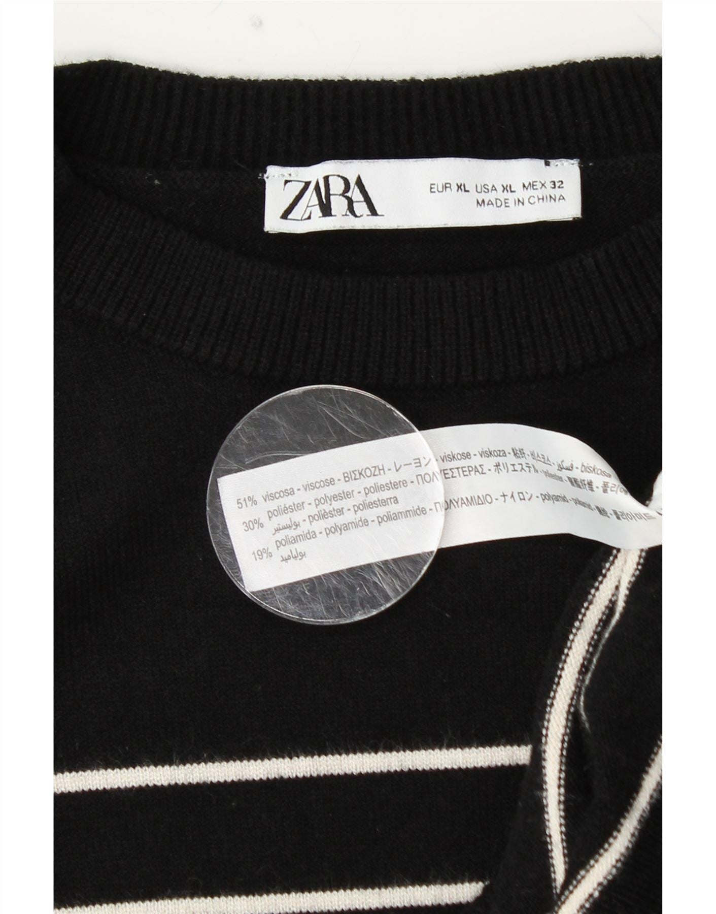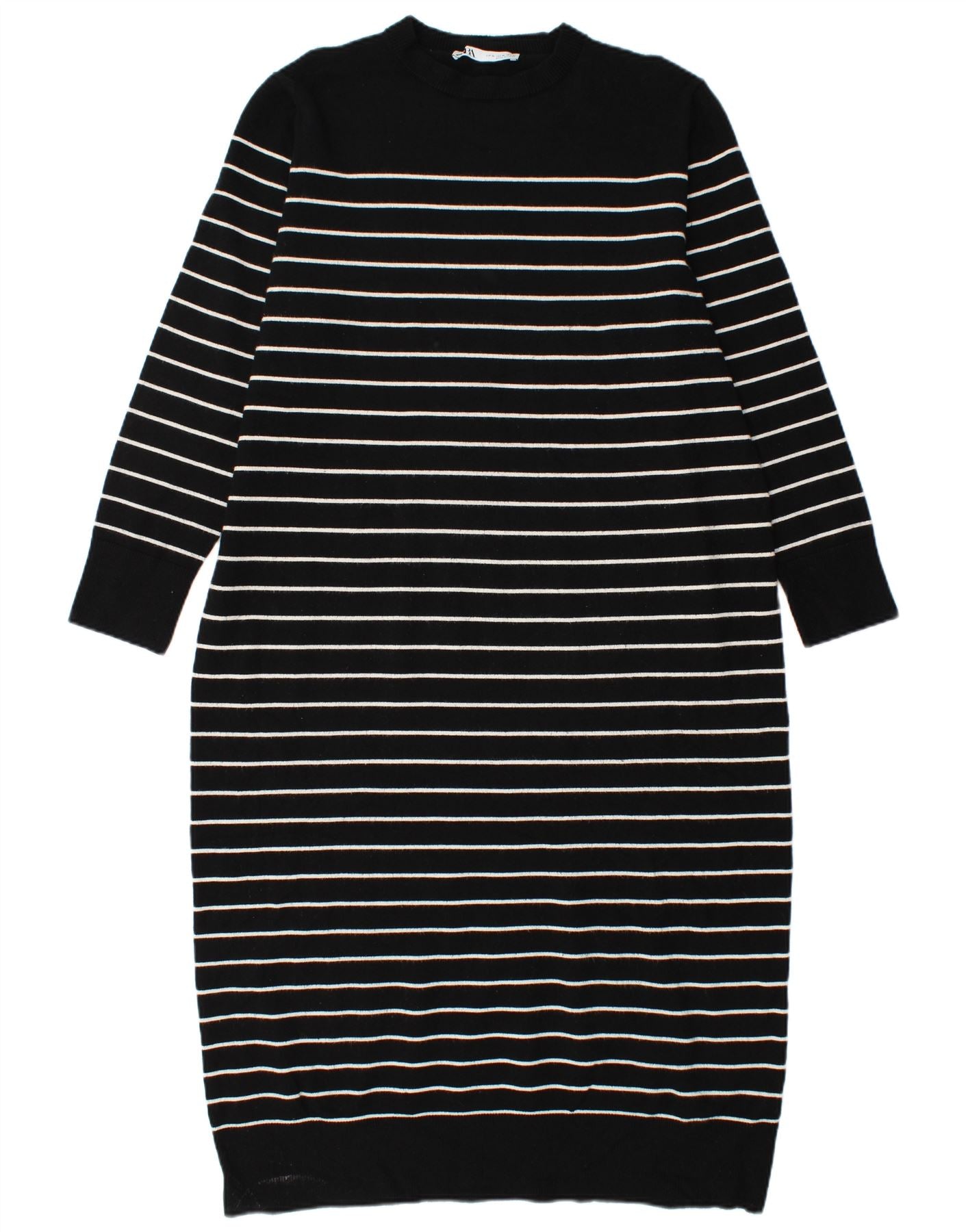 ZARA Damen Langarm-Pulloverkleid UK 18 XL Schwarz gestreifte Viskose