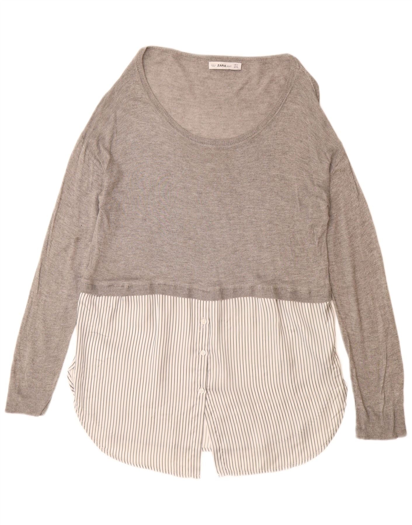 ZARA Damen Longline-Pullover mit U-Boot-Ausschnitt, UK 14, mittelgraue Viskose